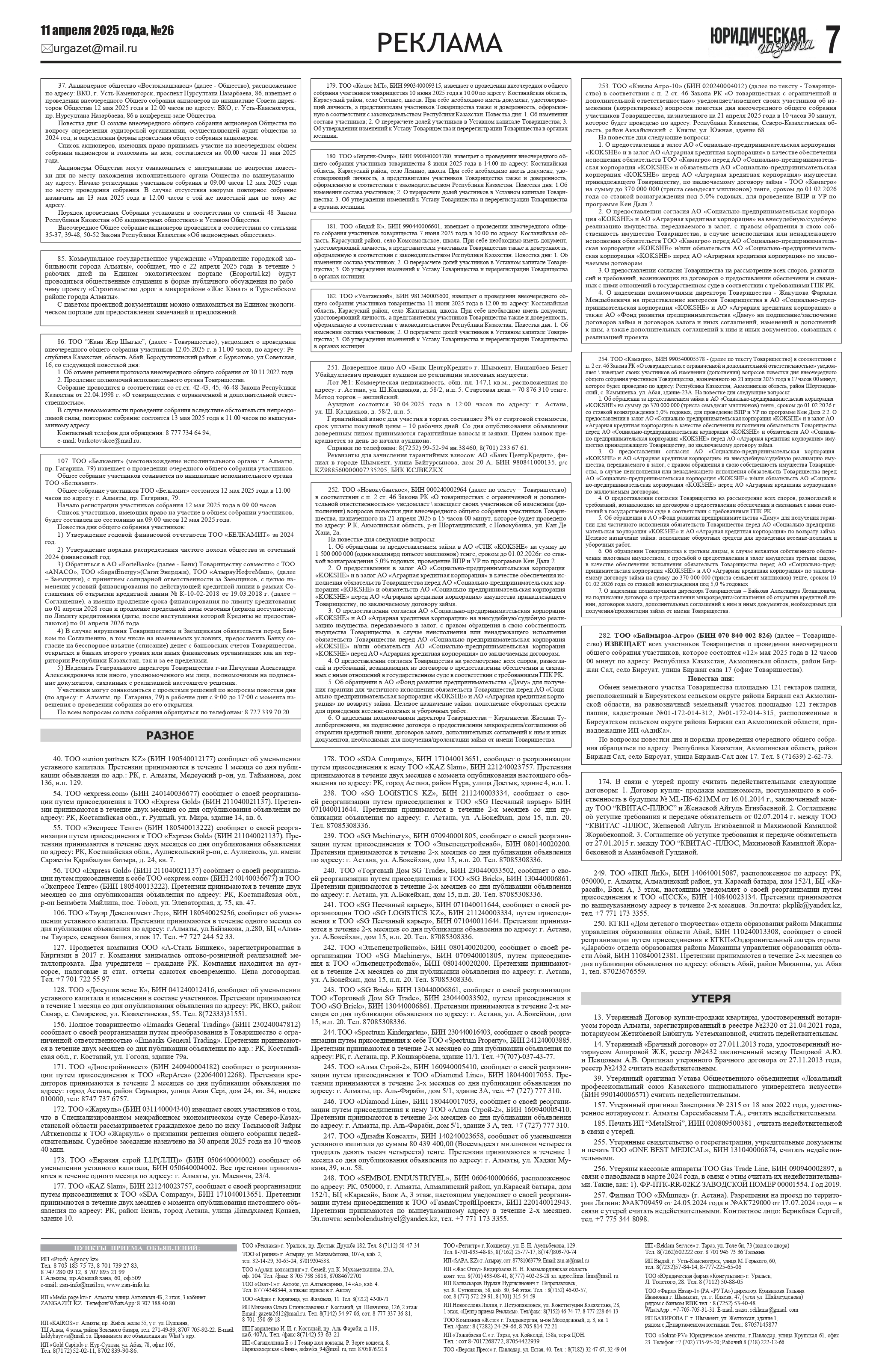 | 1 | г.Алматы, Турксибский район |