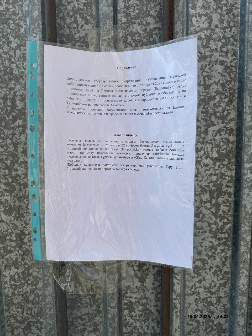 2. Период проведения общественных слушаний: 22/04/2025 - 29/04/2025