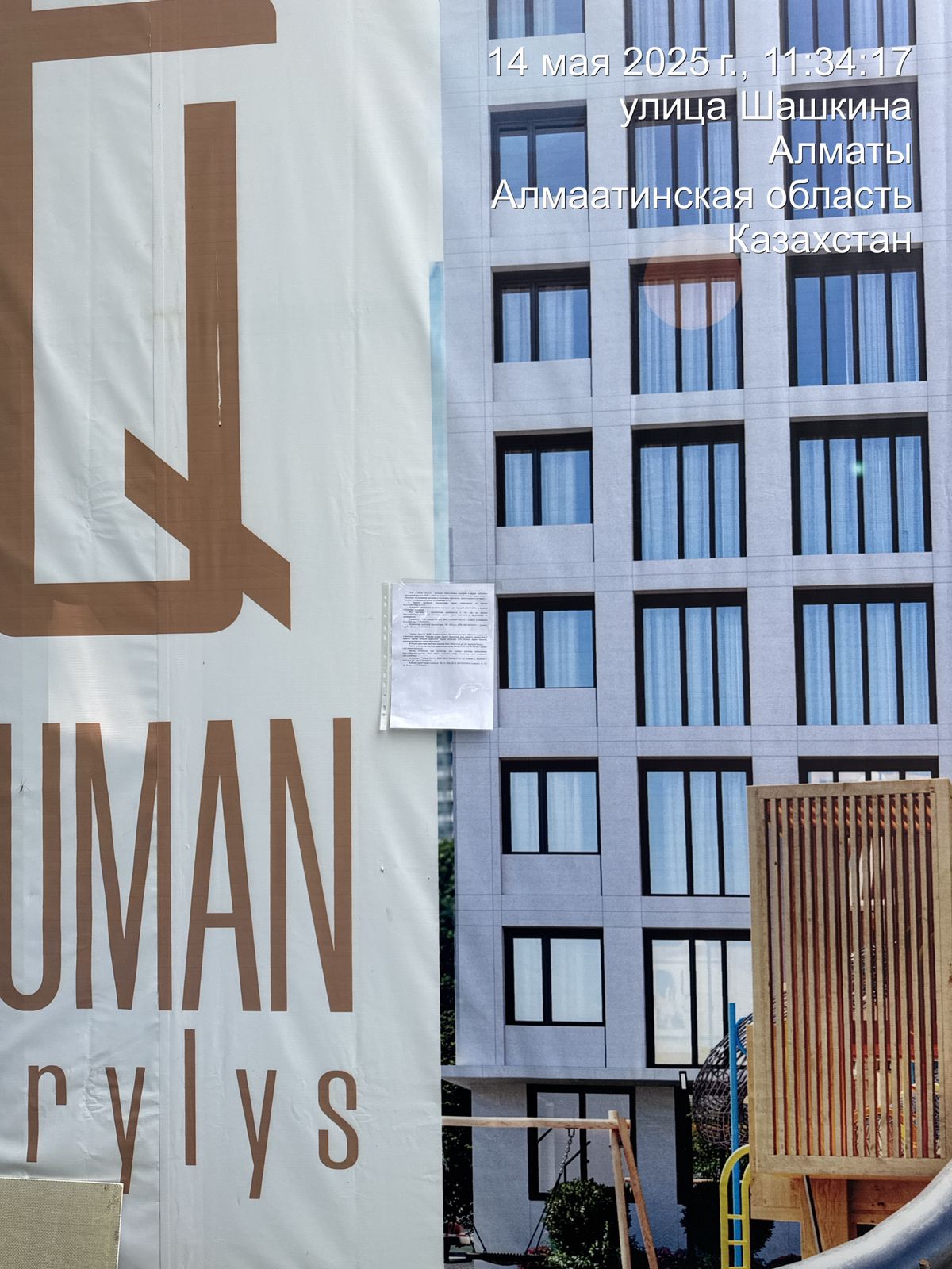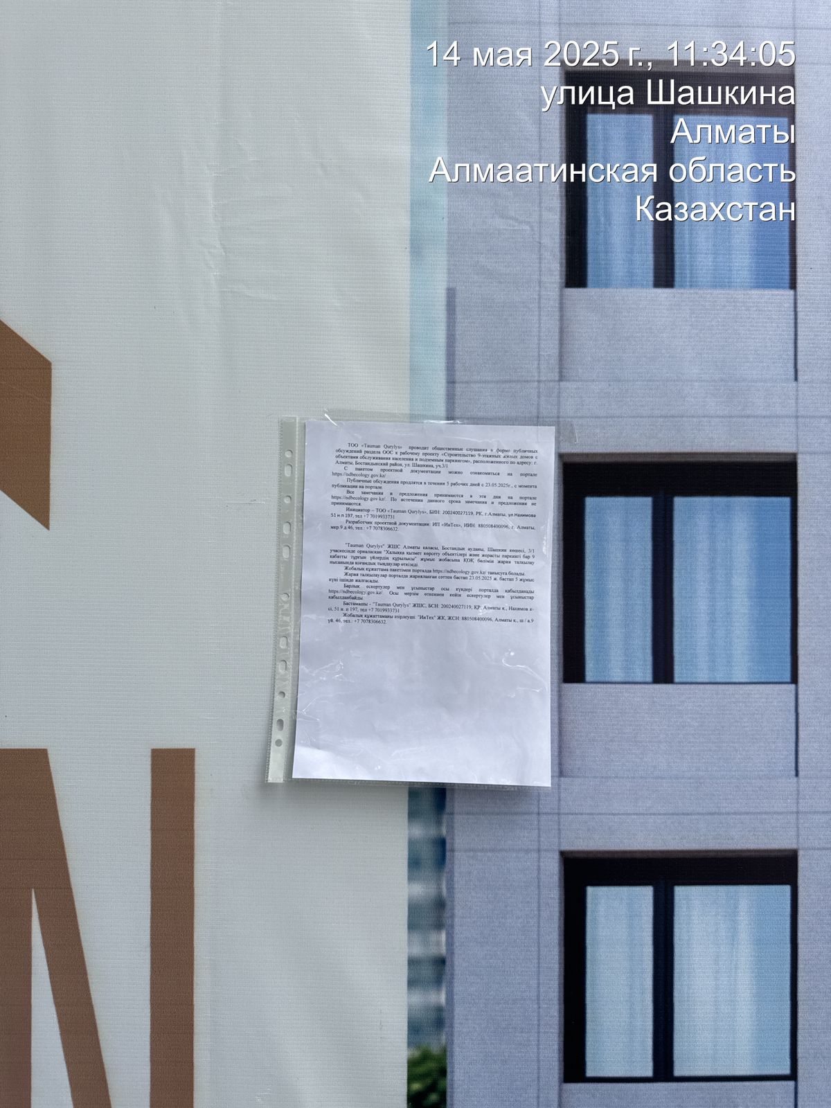 По проекту: «Строительство 9-этажных жилых домов с объектами обслуживания населения и подземным паркингом», расположенного по адресу: г. Алматы, Бостандыкский район, ул. Шашкина, уч.3/1.