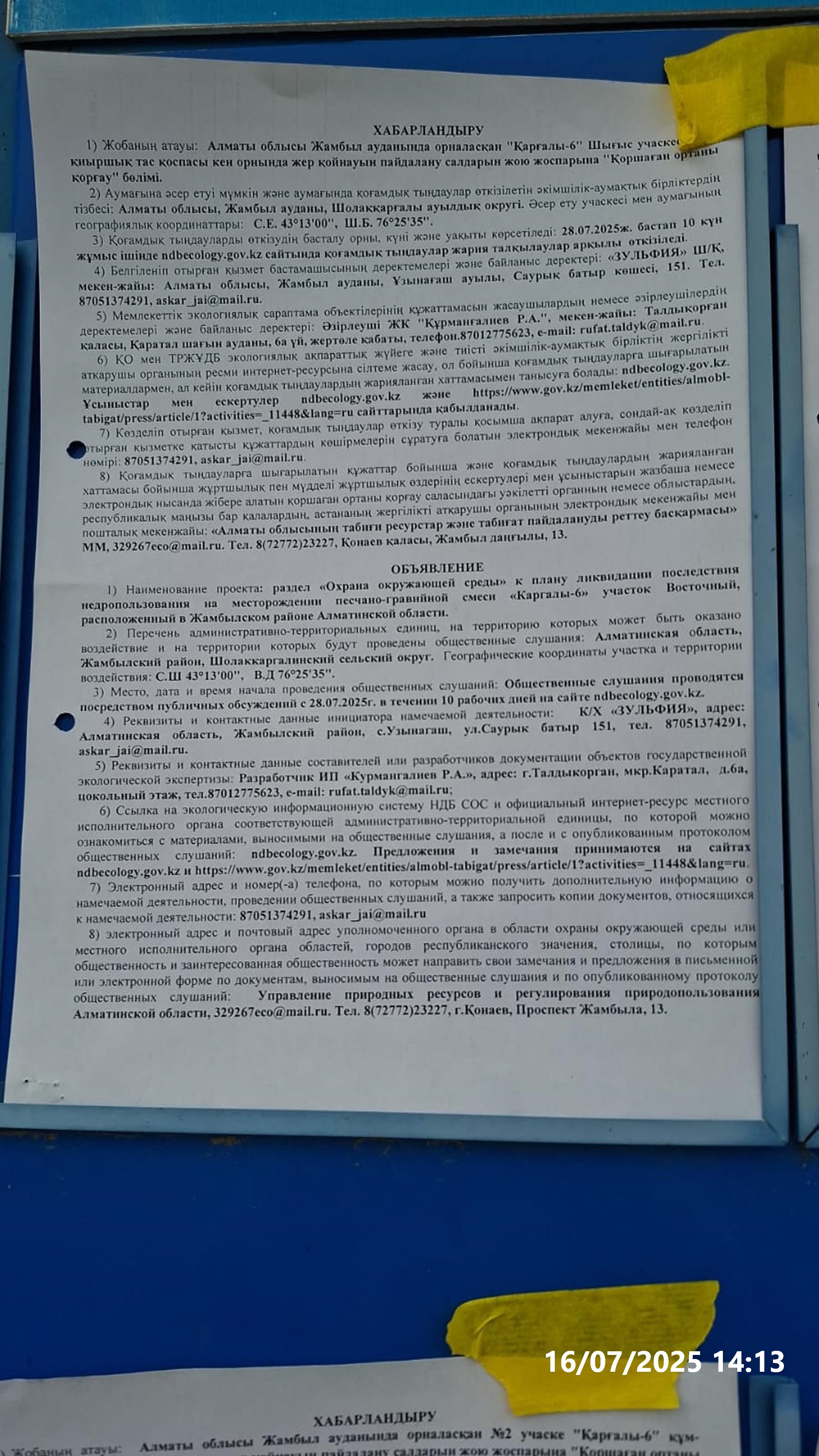 2. Период проведения общественных слушаний: 28.07.2025 - 10.08.2025