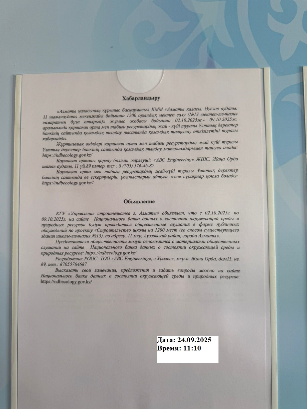 2. Период проведения общественных слушаний: 02/10/2025 - 08/10/2025