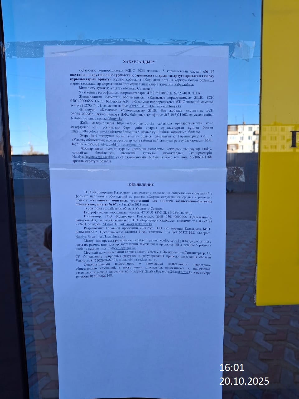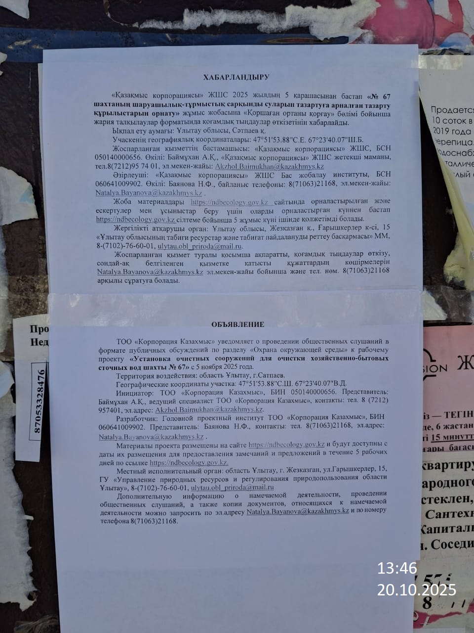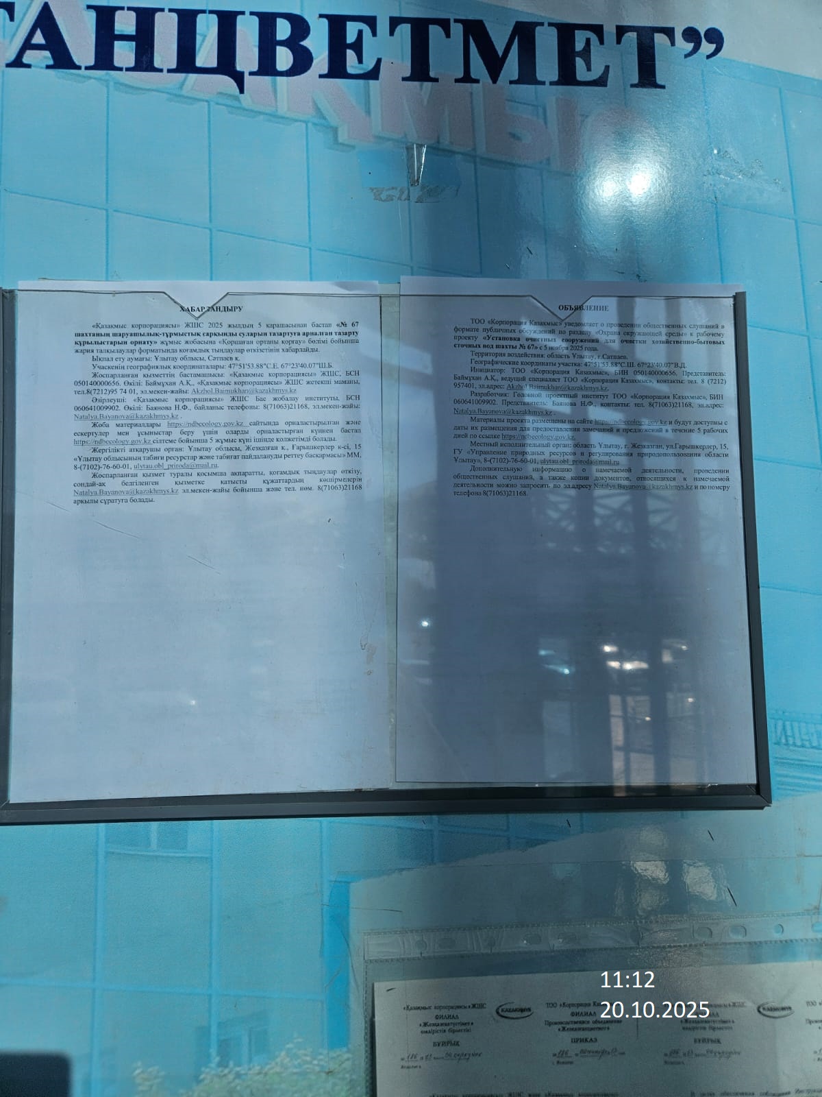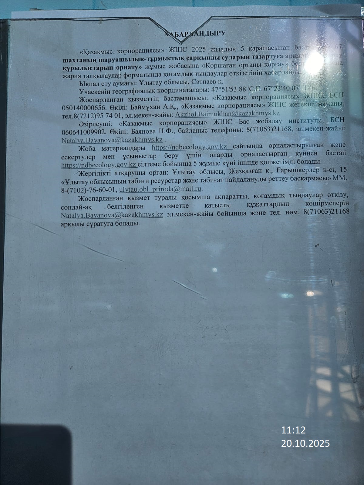 1.3. Контакты:Natalya.Bayanova@kazakhmys.kz.; ;