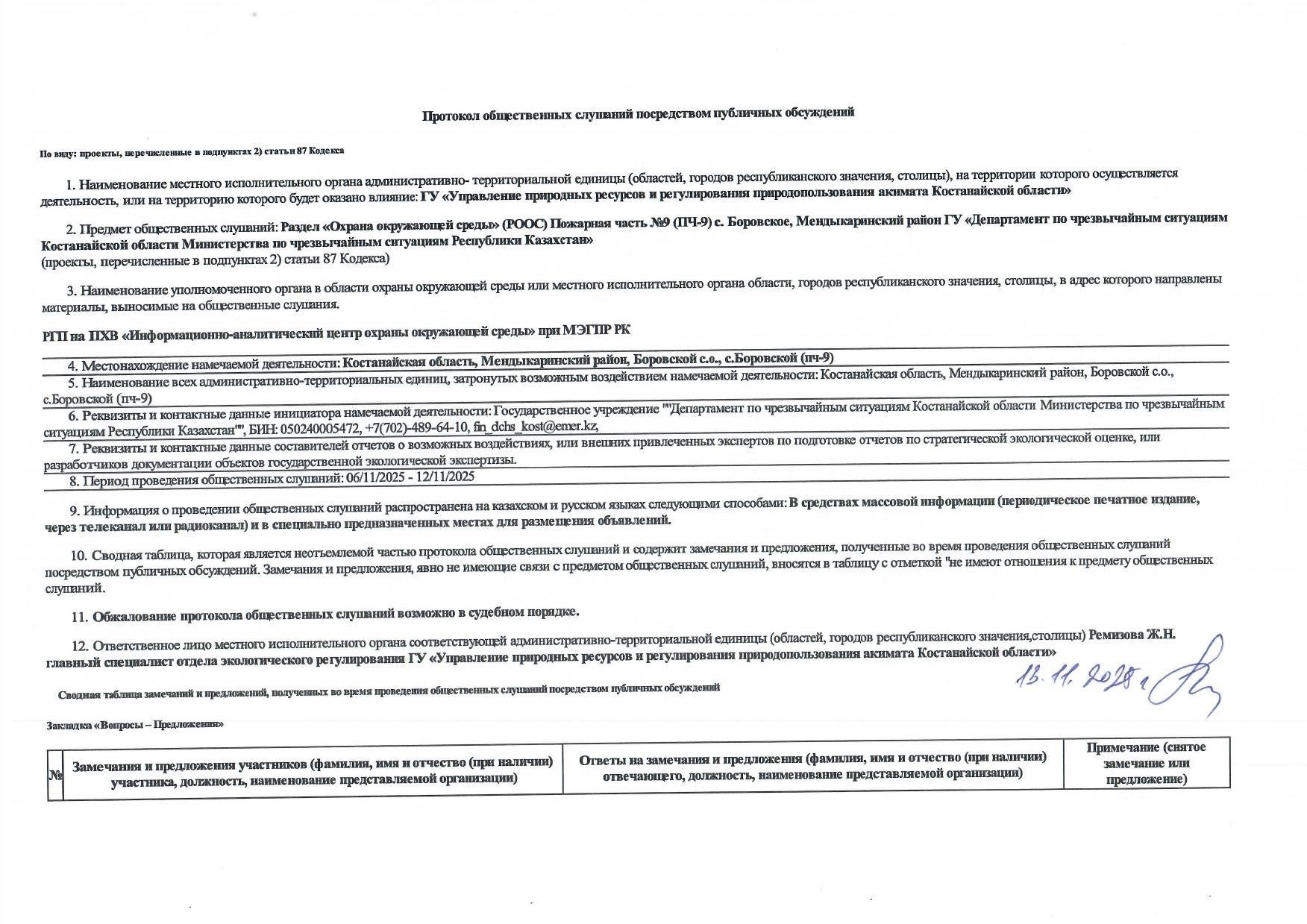 2. Период проведения общественных слушаний: 06/11/2025 - 12/11/2025