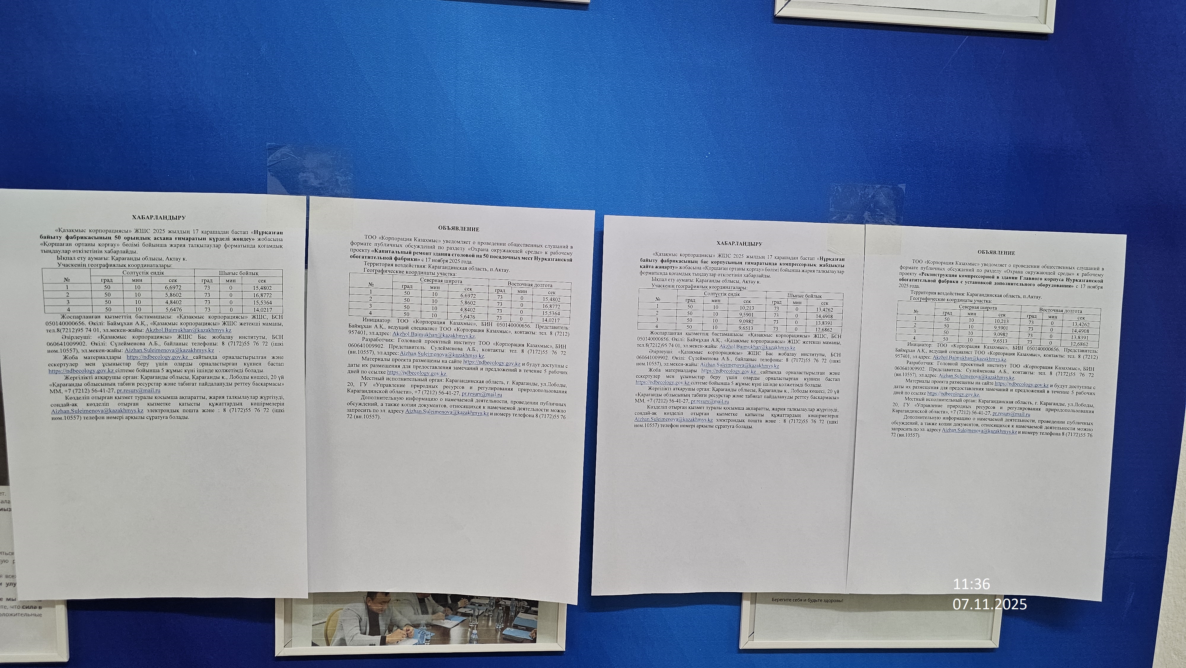 По проекту: Раздел «Охрана окружающей среды» к рабочему проекту «Реконструкция компрессорной в здании Главного корпуса Нурказганской обогатительной фабрики с установкой дополнительного оборудования»
