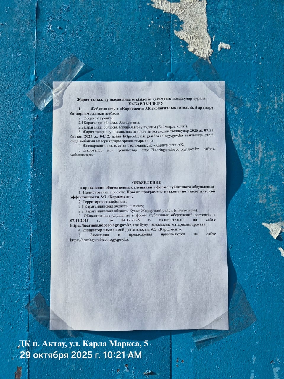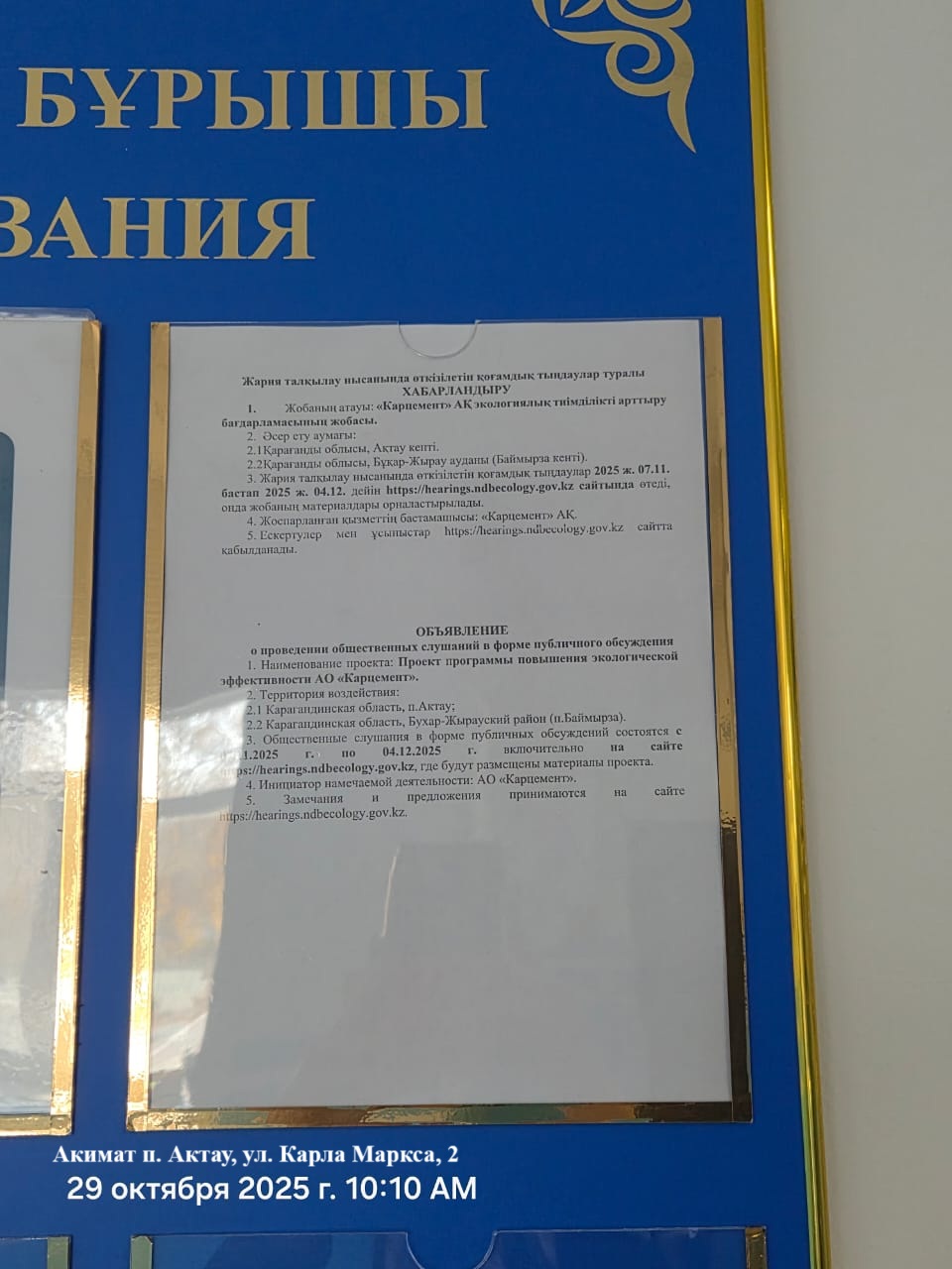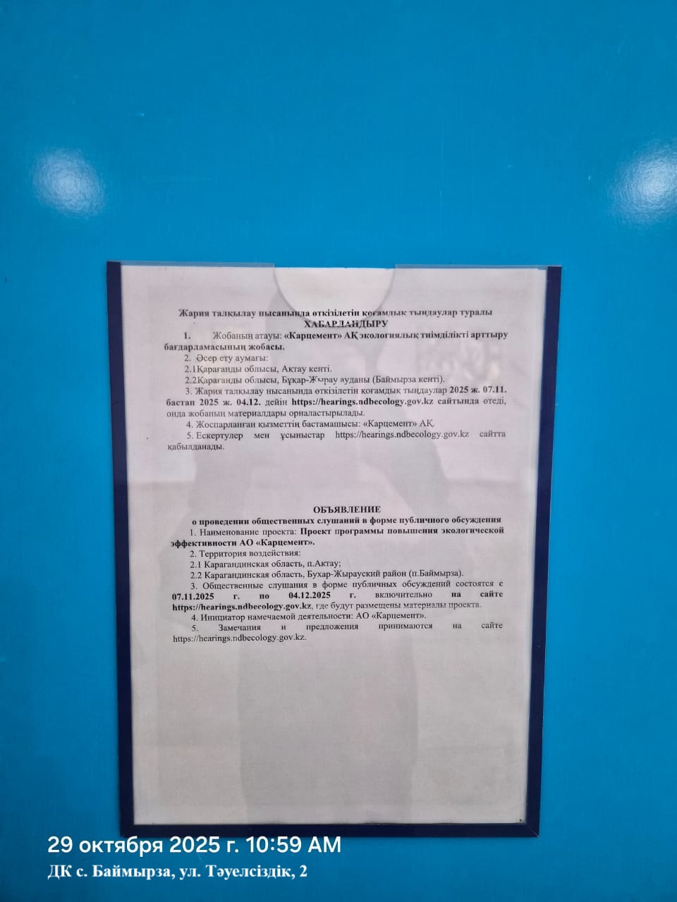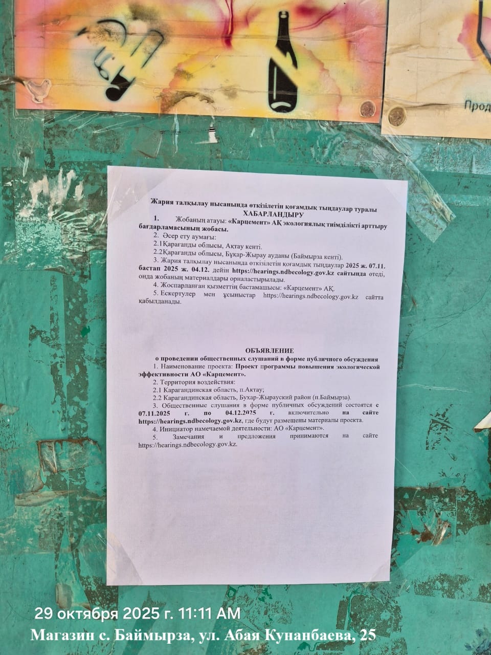 1. Инициатор: Акционерное общество ""Карцемент""