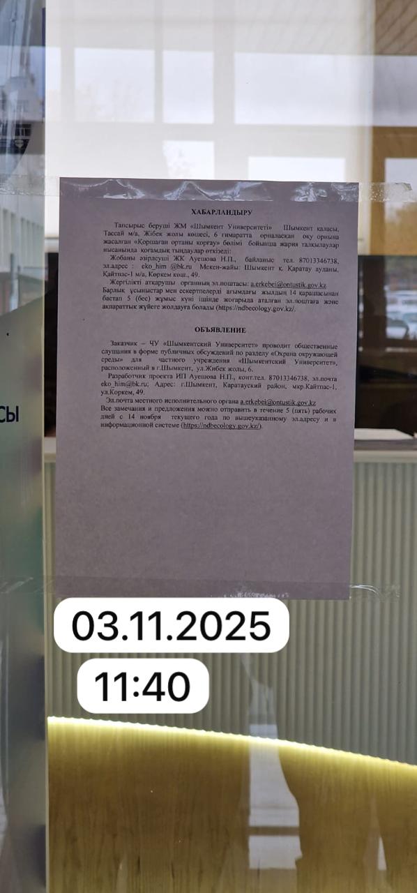 | 1 | г.Шымкент, Каратауский район |