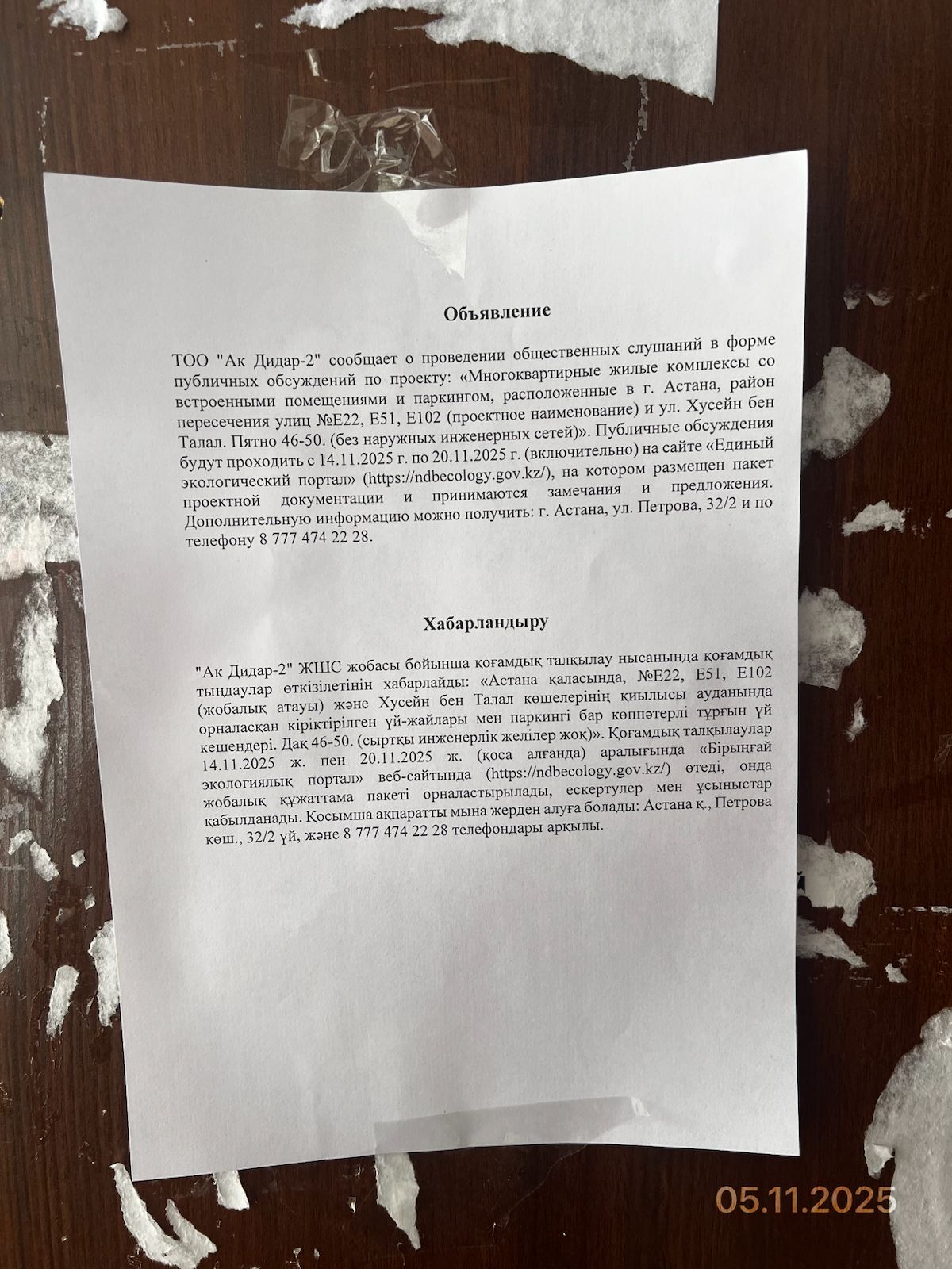 2. Период проведения общественных слушаний: 14/11/2025 - 20/11/2025