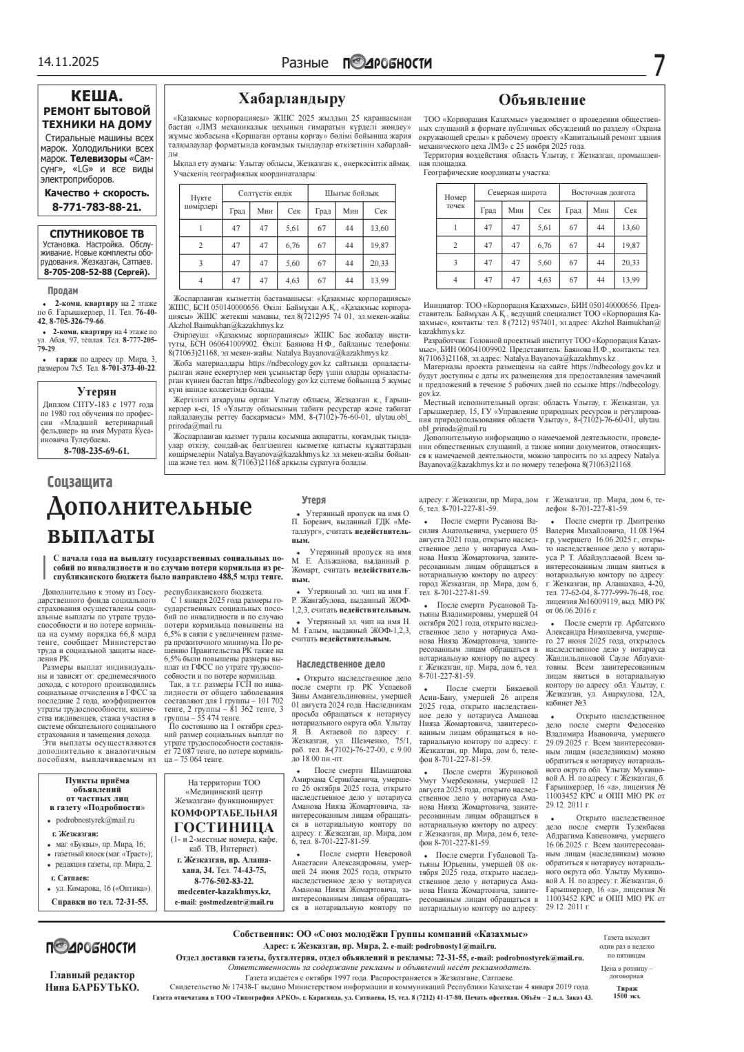 | 1 | область Ұлытау, Жезказган Г.А., г.Жезказган |