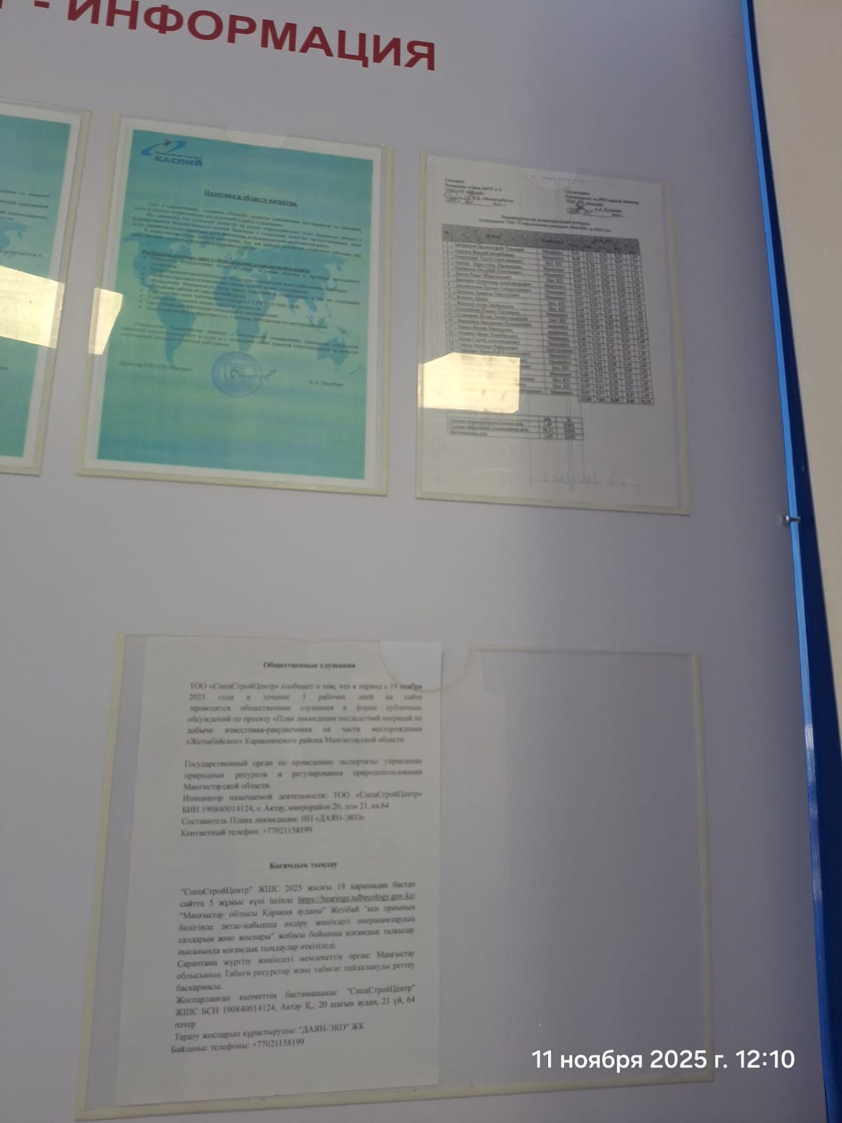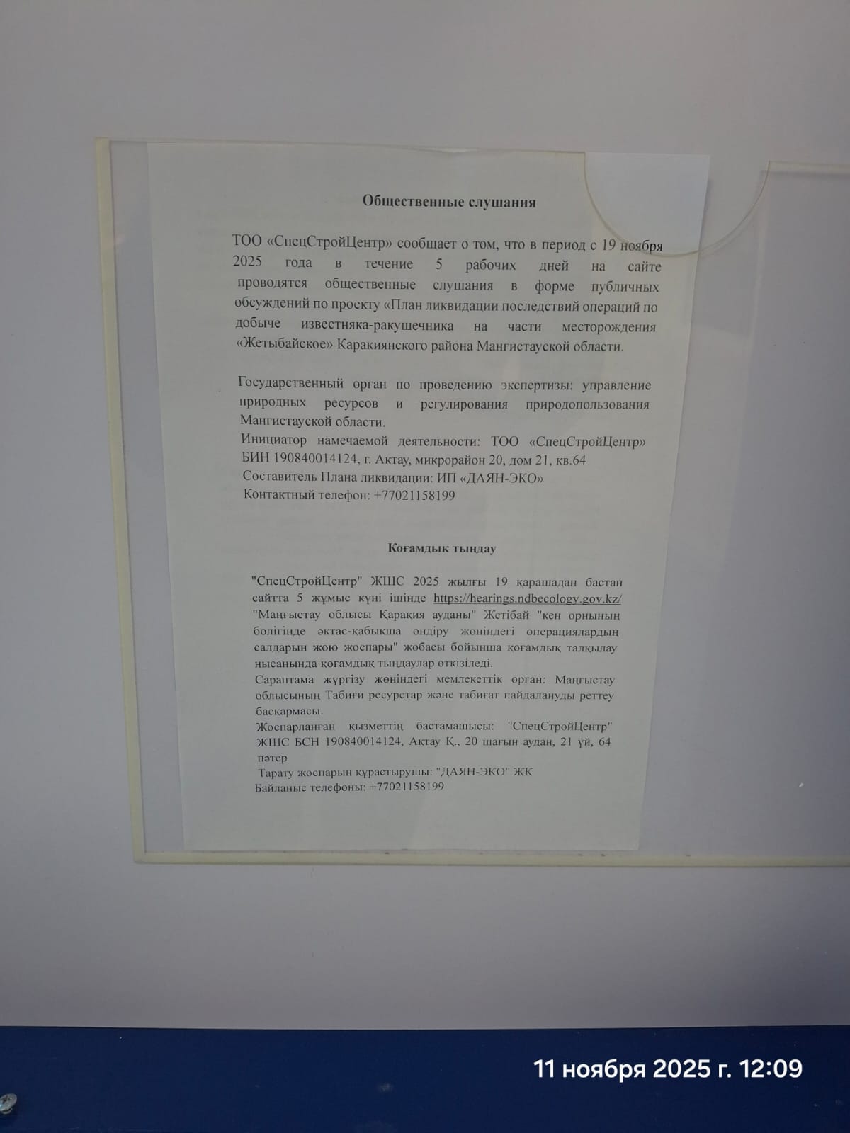 По проекту: ПЛАН ЛИКВИДАЦИИ и расчет приблизительной стоимости ликвидации последствий операций по добыче добычу известняка-ракушечника на части Жетыбайского месторождения в Каракиянском районе Мангистауской области Республики Казахстан с разделом Охраны Окружающей Среды
