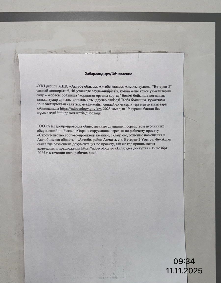 2. Период проведения общественных слушаний: 19/11/2025 - 25/11/2025