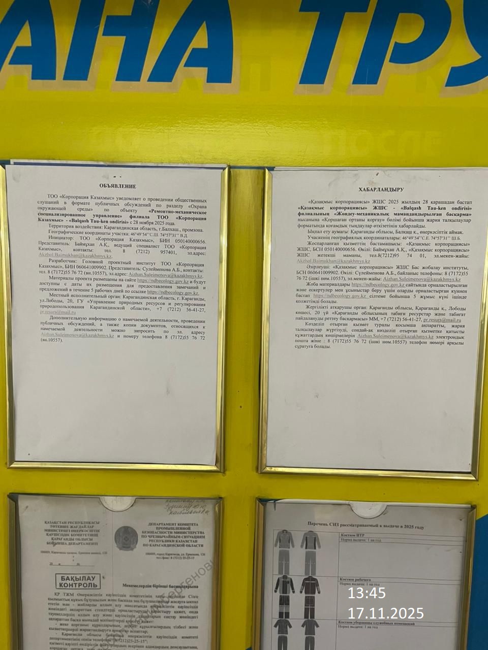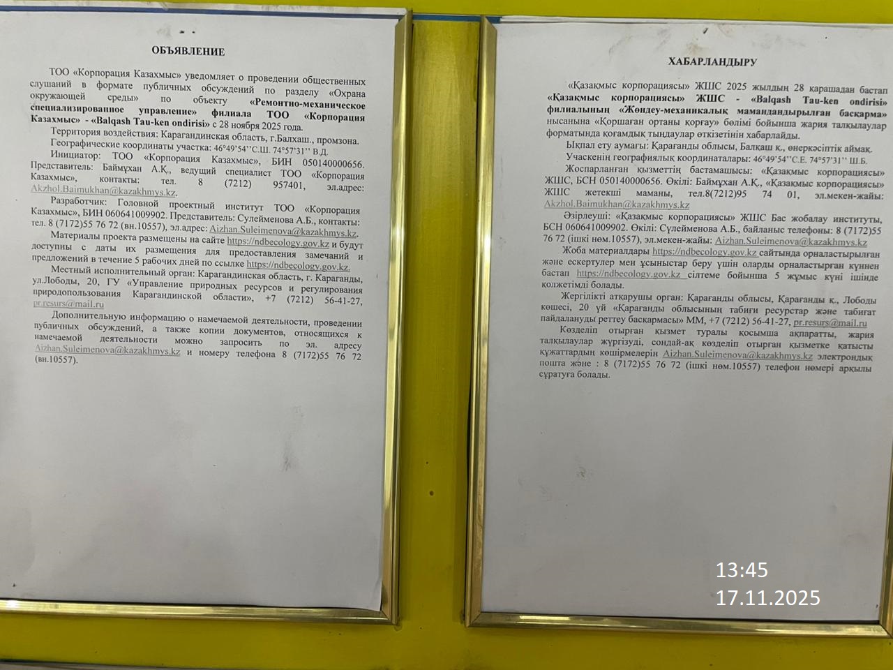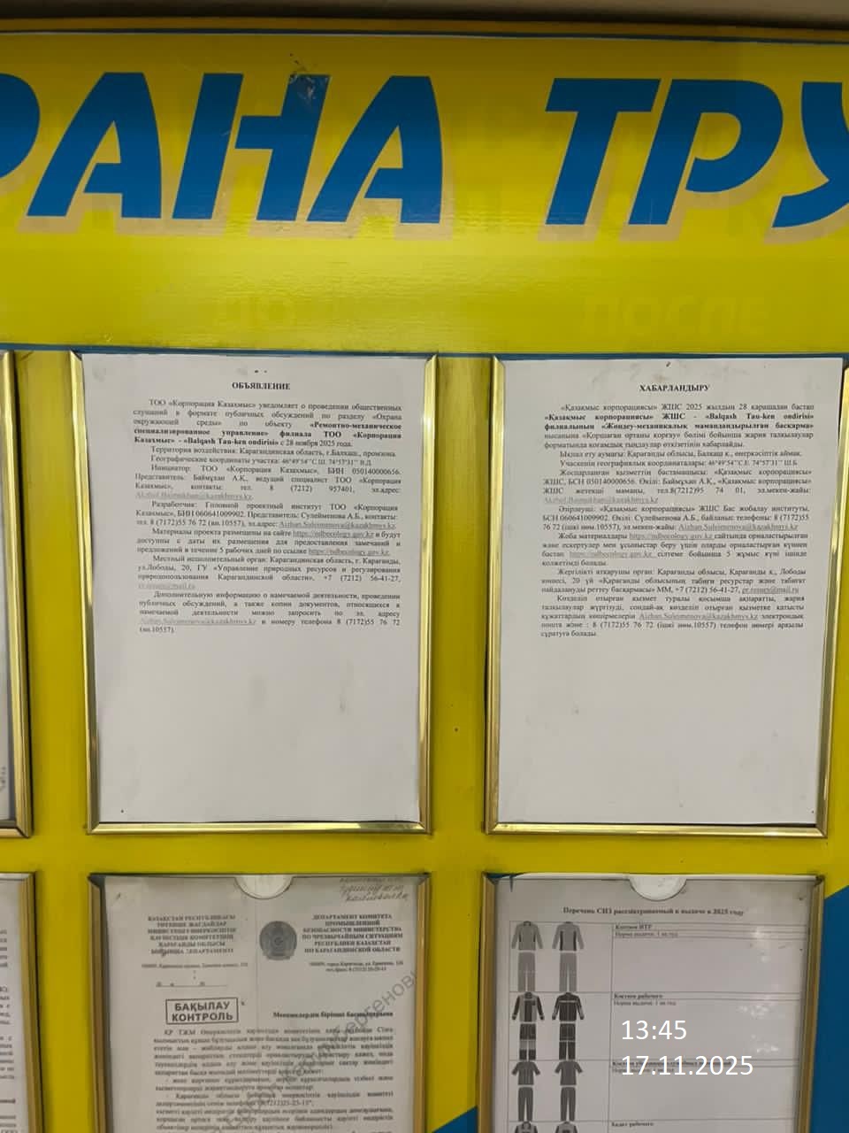 1.3. Контакты:akzhol.baimukhan@kazakhmys.kz; ;