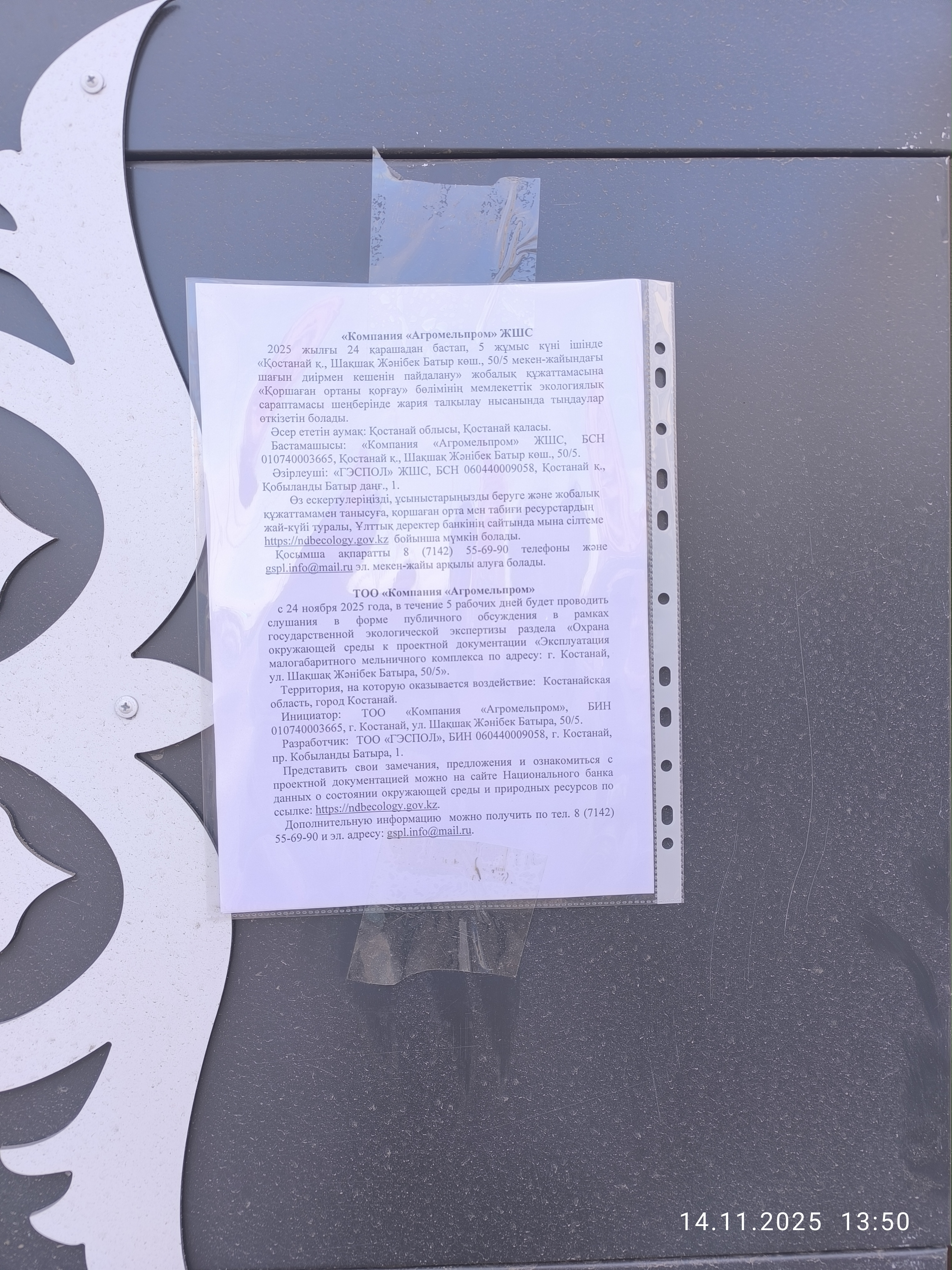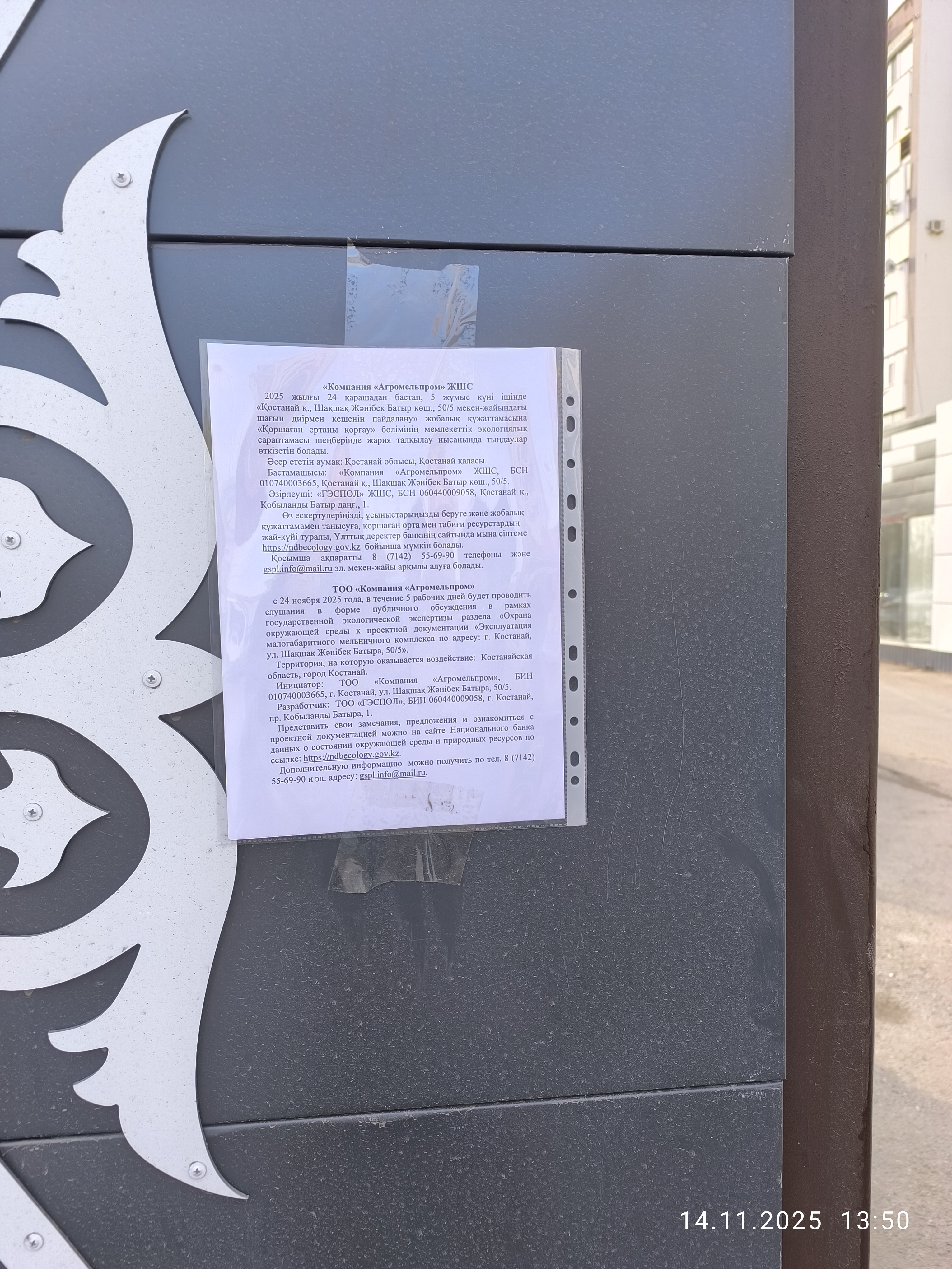 2. Период проведения общественных слушаний: 24/11/2025 - 30/11/2025
