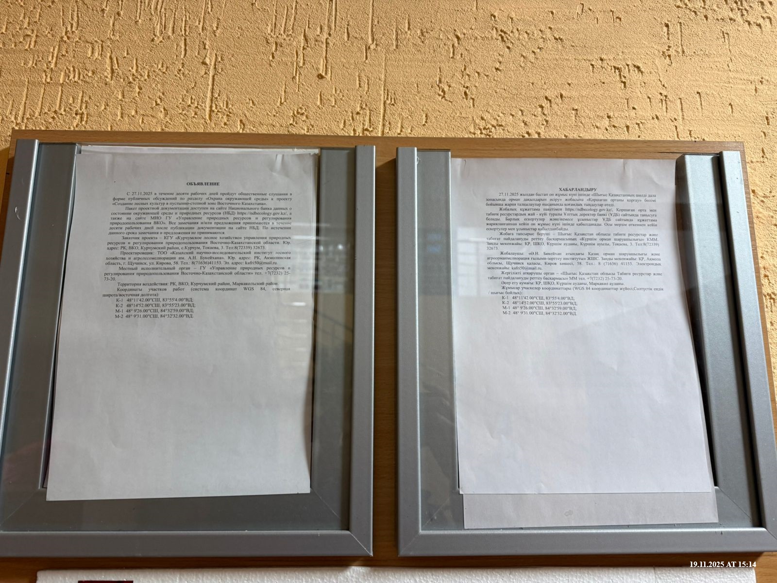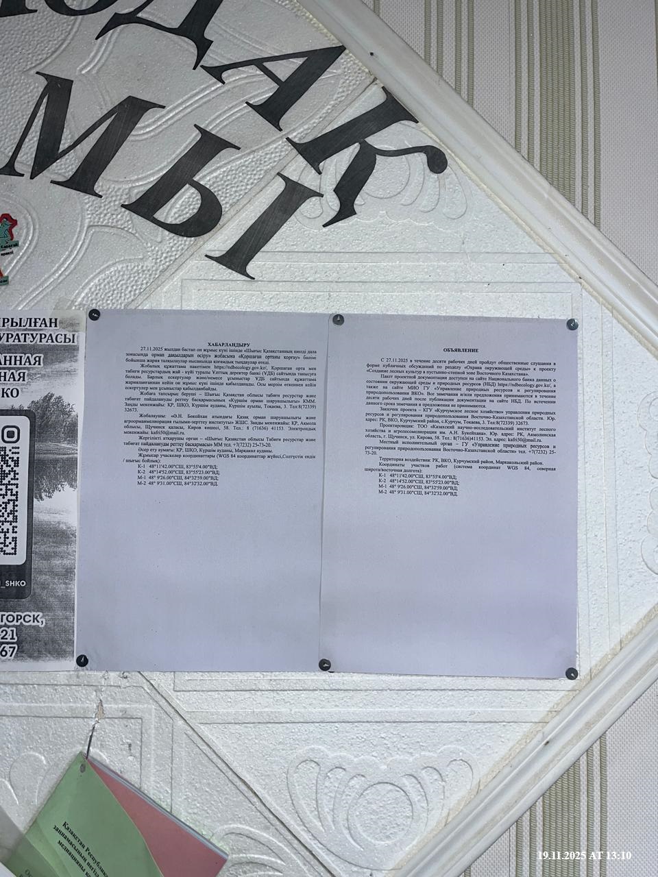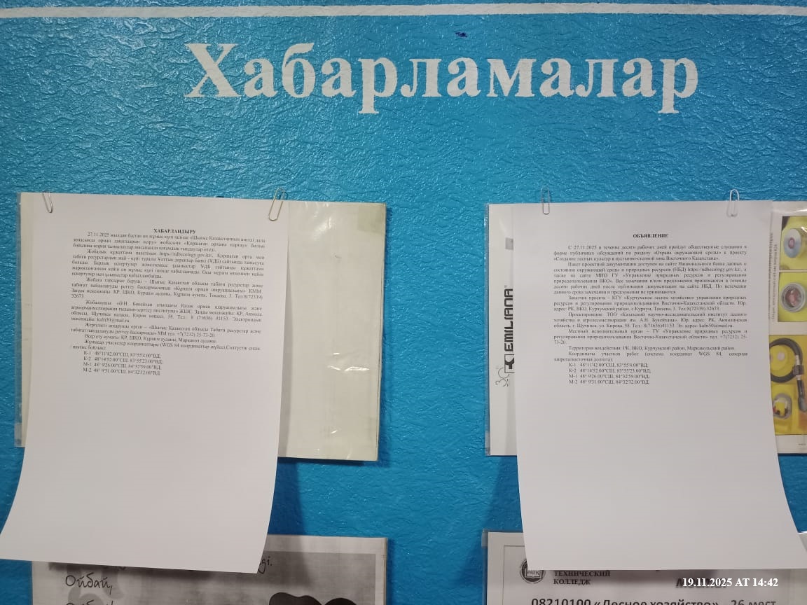 1. Инициатор: Коммунальное государственное учреждение ""Курчумское лесное хозяйство"" управления природных ресурсов и регулирования природопользования Восточно-Казахстанской области
