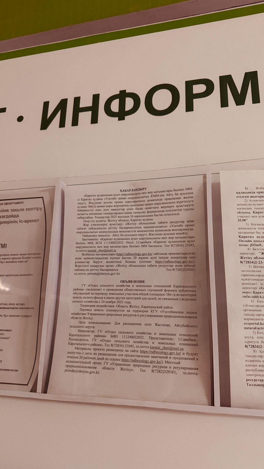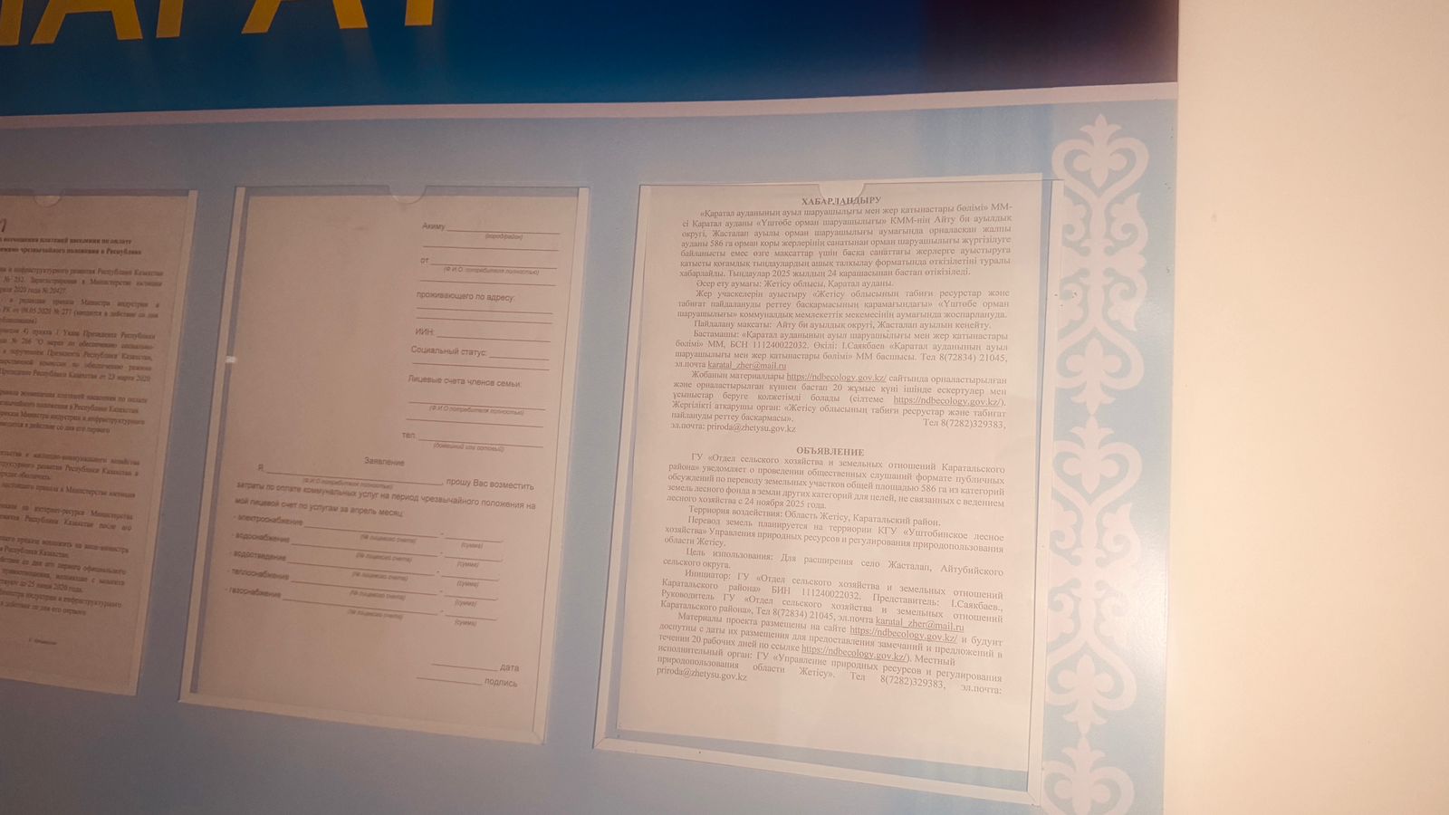 1. Инициатор: ГУ "Отдел сельского хозяйства и земельных отношений Каратальского района"