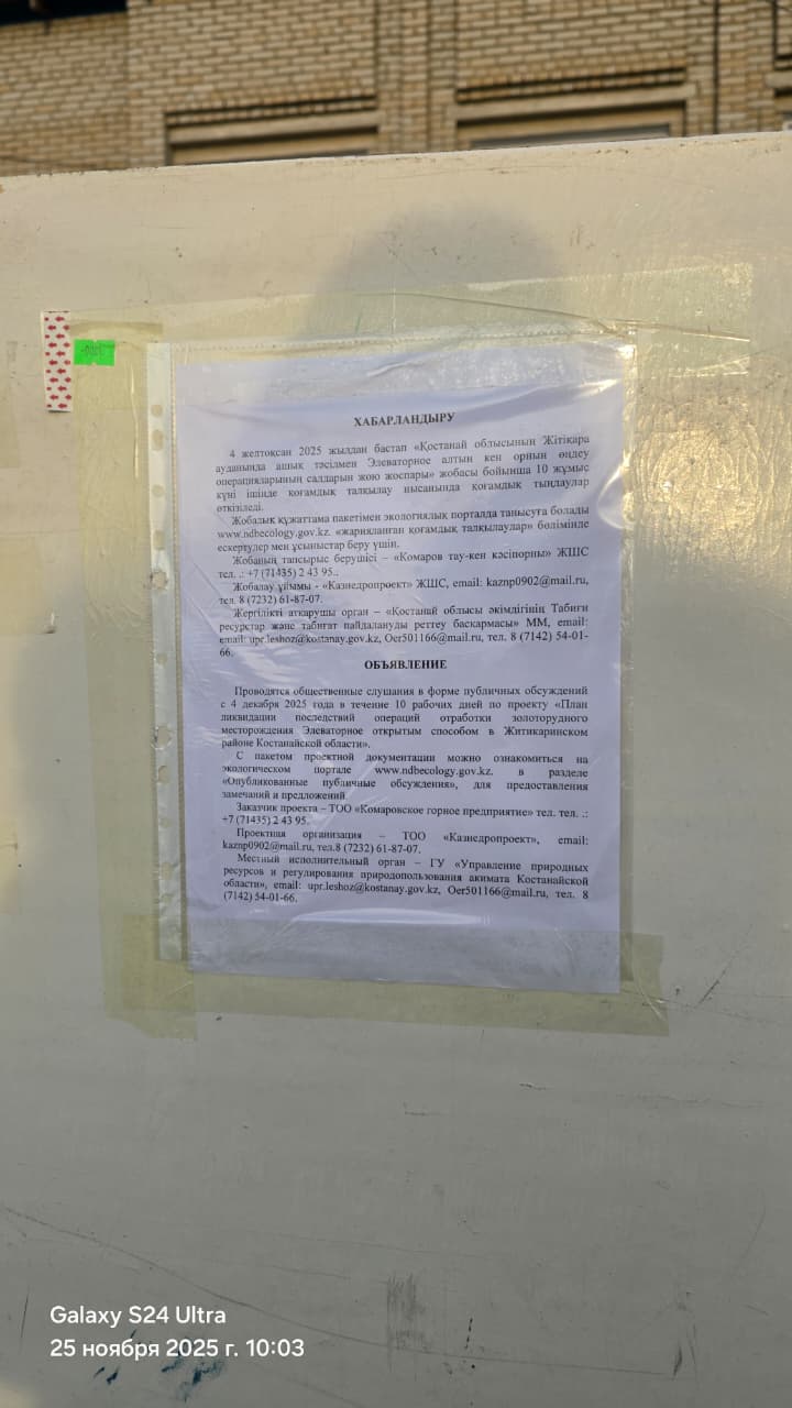 По проекту: План ликвидации последствий операций отработки золоторудного месторождения Элеваторное открытым способом в Житикаринском районе Костанайской области».