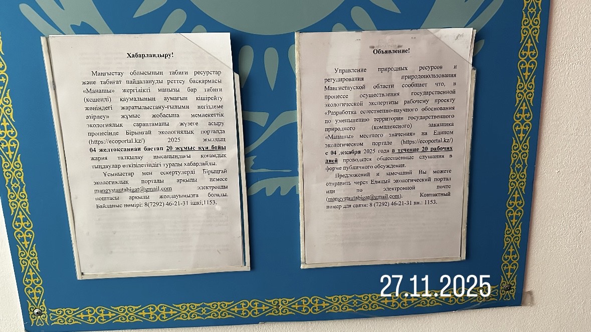 1.3. Контакты:s.bazarbay@mangystau.gov.kz; ;