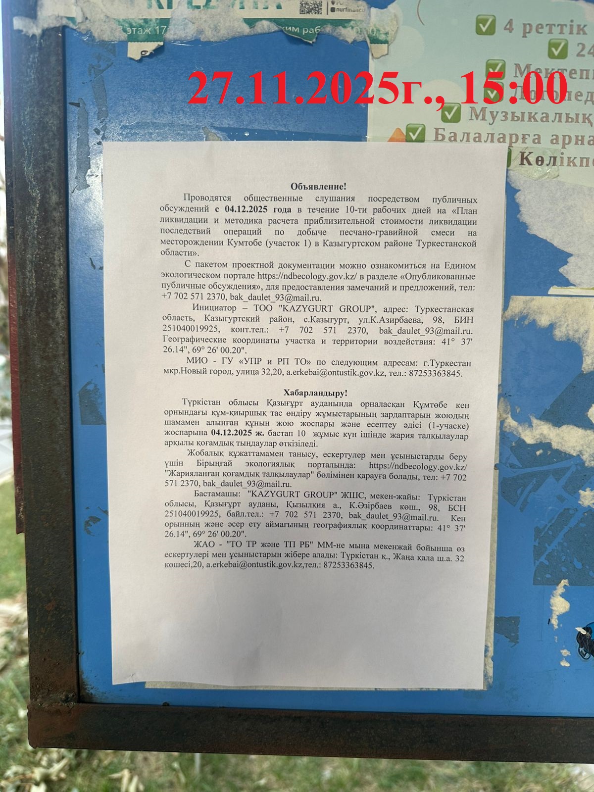 1.3. Контакты:kazygurt2025@mail.ru; ndbecology.gov.kz;
