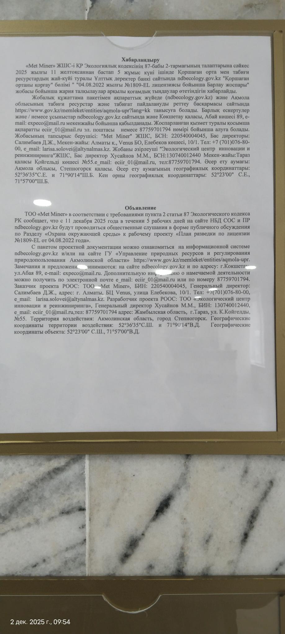 2. Период проведения общественных слушаний: 11.12.2025 - 17.12.2025