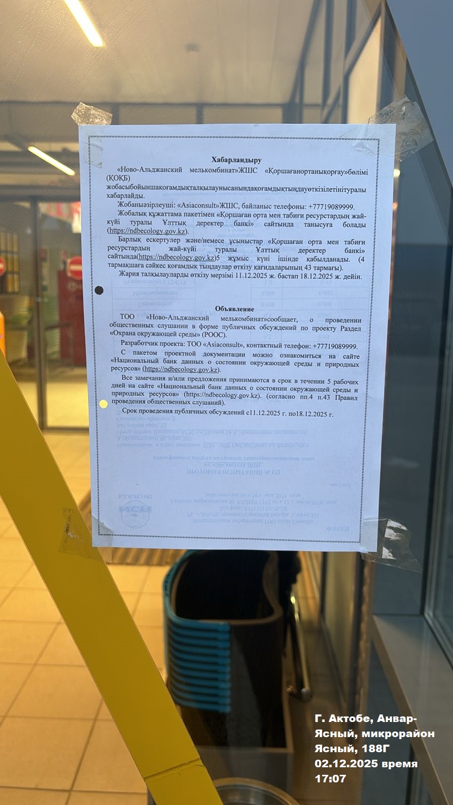 | 1 | Актюбинская область, Актобе Г.А., г.Актобе |