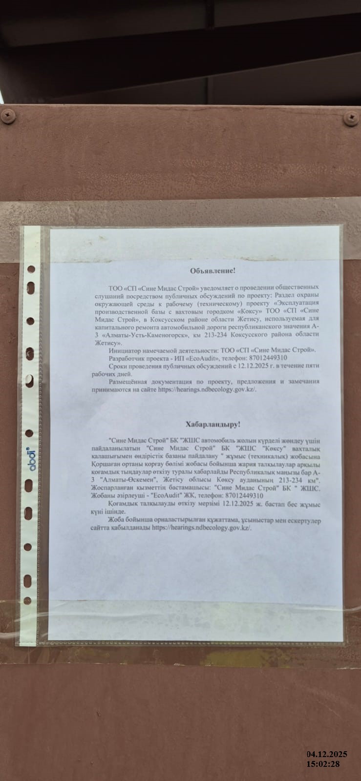 2. Период проведения общественных слушаний: 12.12.2025 - 18.12.2025