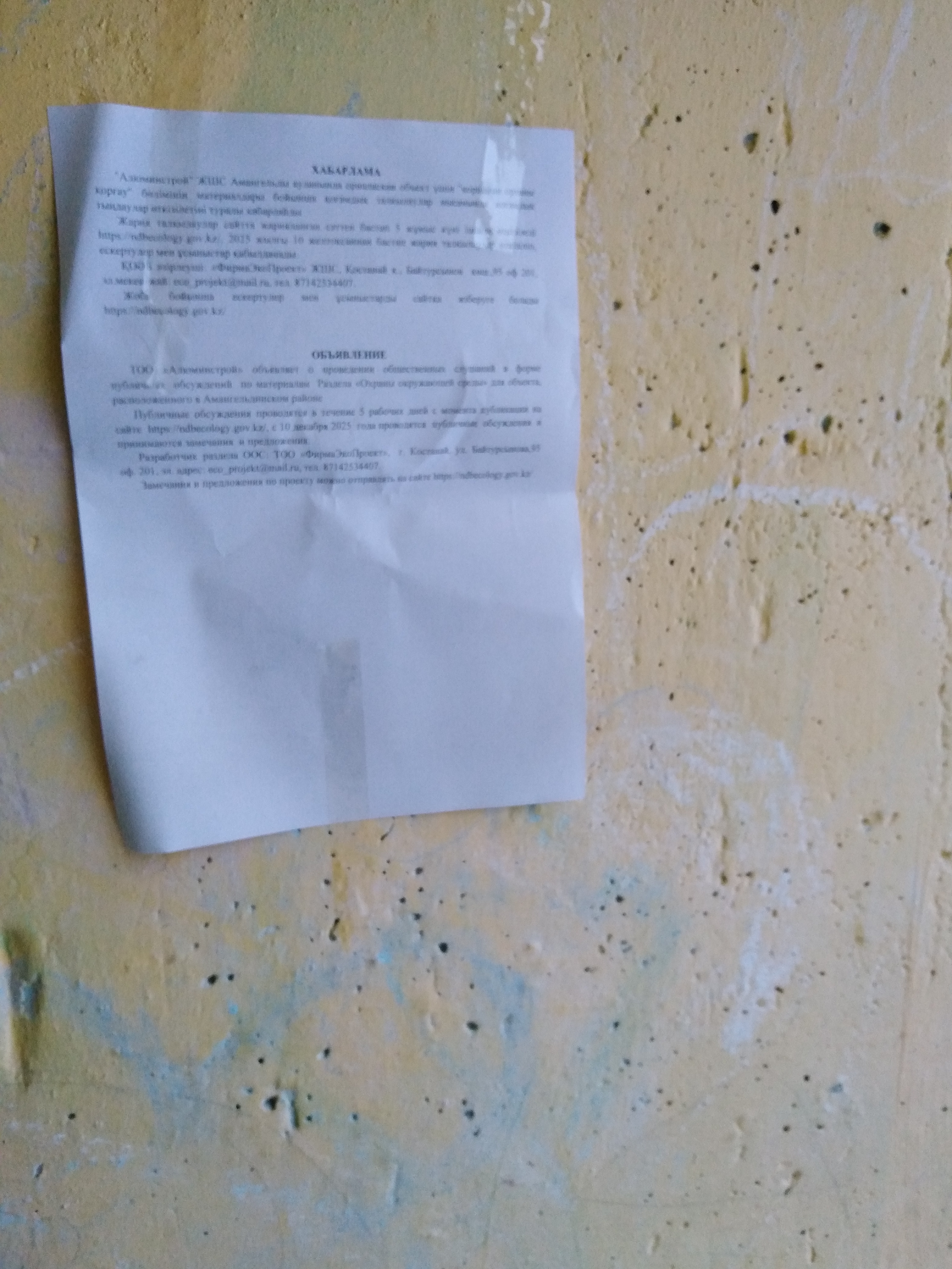 По проекту: Раздел «Охраны окружающей среды» для объекта, расположенного в Амангельдинском районе