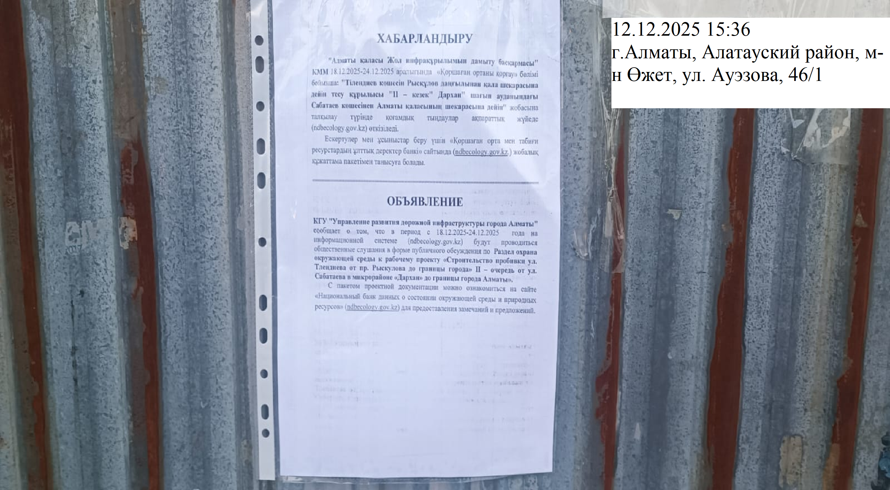 2. Период проведения общественных слушаний: 18/12/2025 - 24/12/2025
