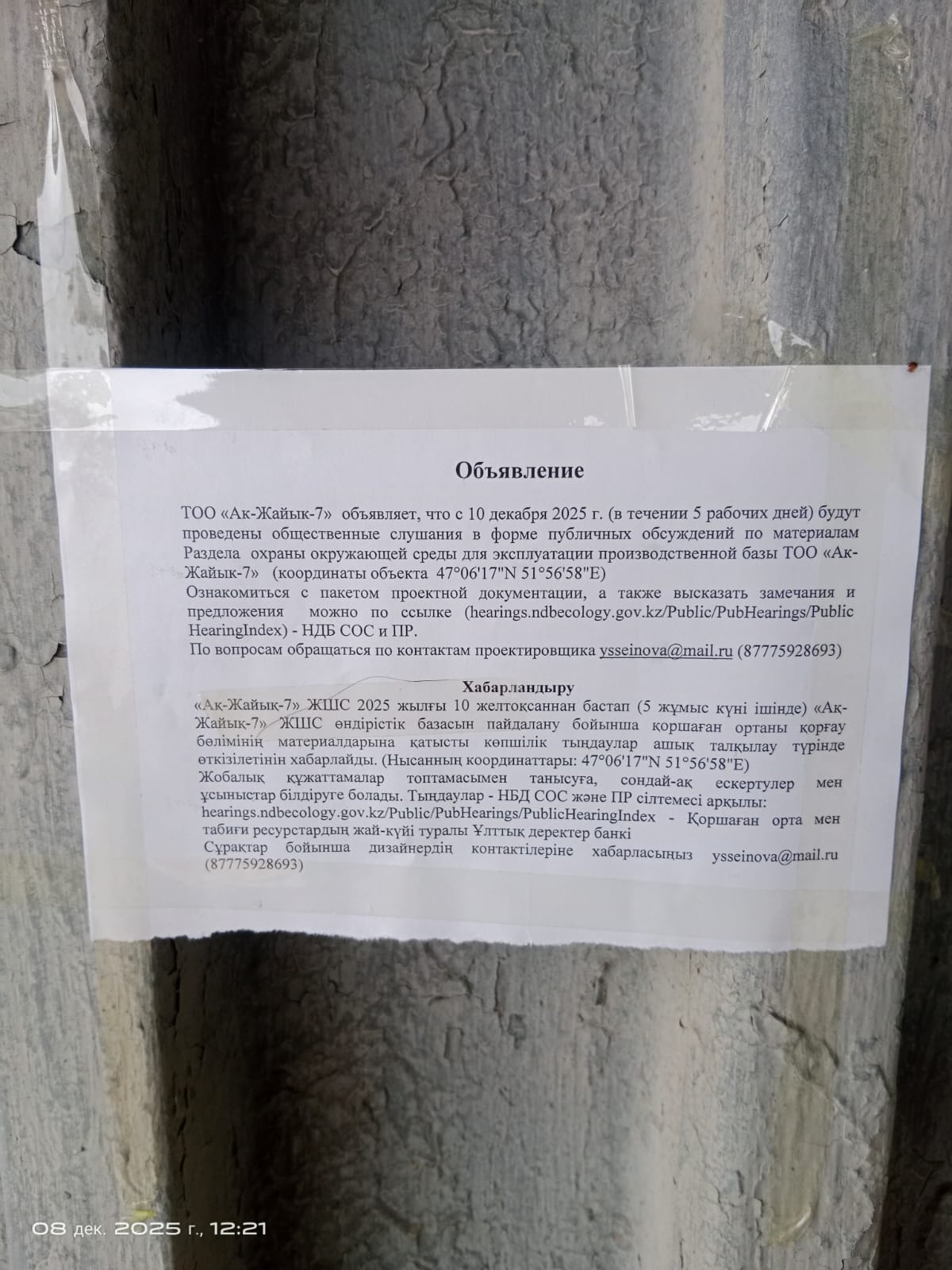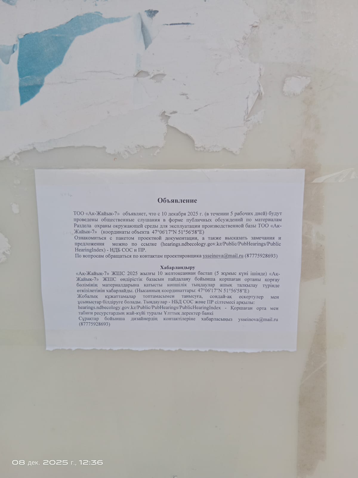 1. Инициатор: Товарищество с ограниченной ответственностью ""Ак-Жайык-7""
