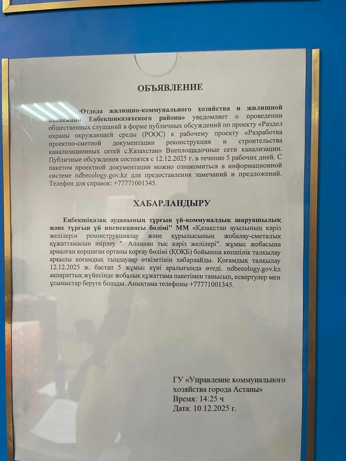 1. Инициатор: Государственное учреждение ""Отдел жилищно-коммунального хозяйства и жилищной инспекции Енбекшиказахского района""