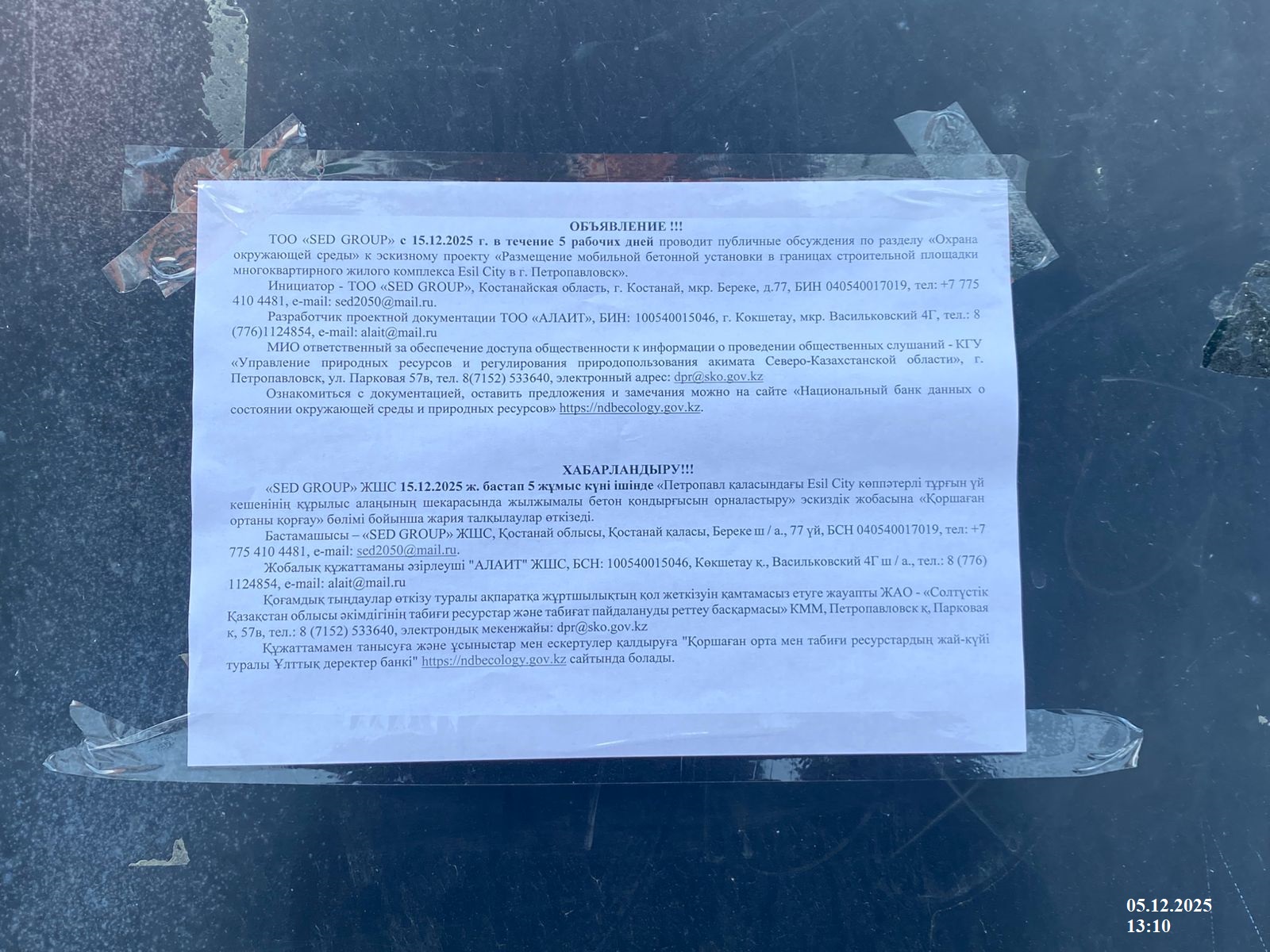 2. Период проведения общественных слушаний: 15.12.2025 - 21.12.2025