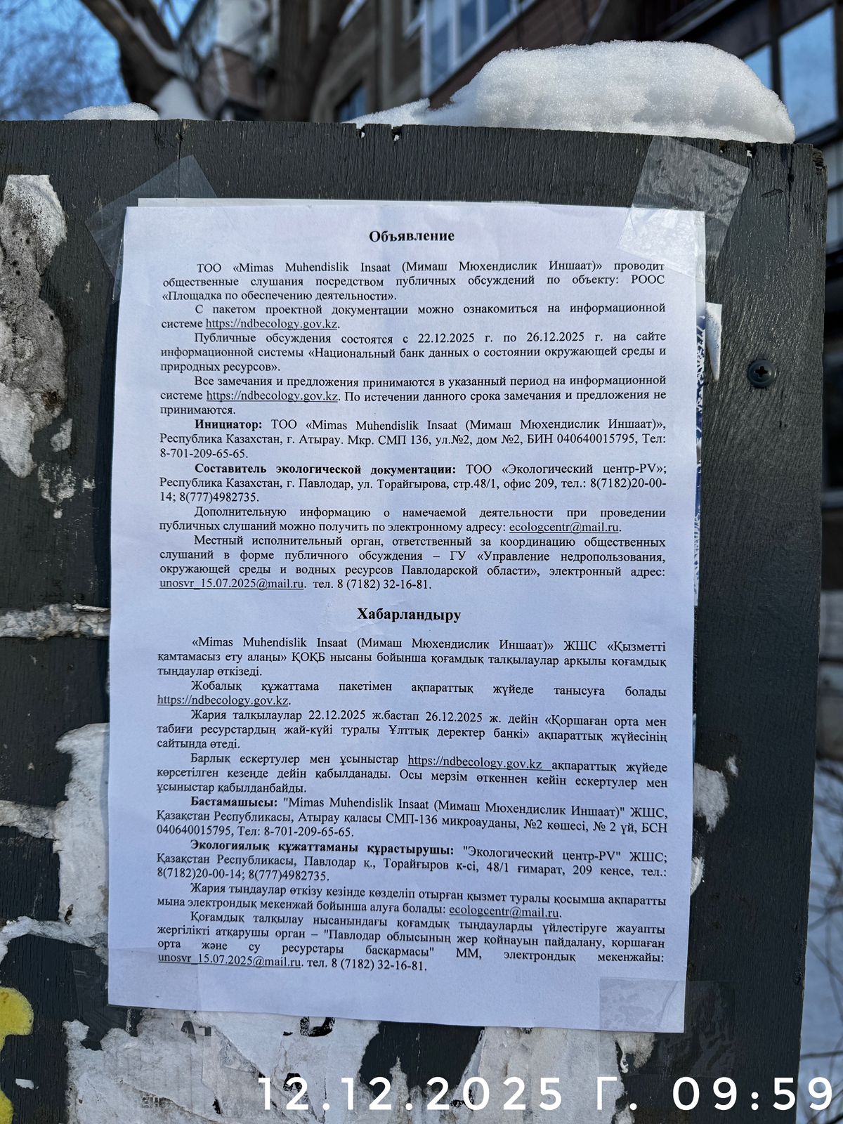 2. Период проведения общественных слушаний: 22.12.2025 - 28.12.2025