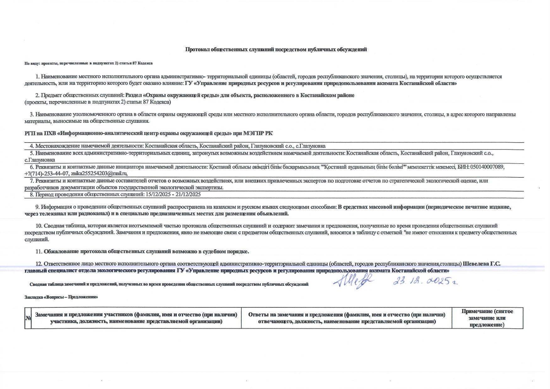 2. Период проведения общественных слушаний: 15.12.2025 - 19.12.2025
