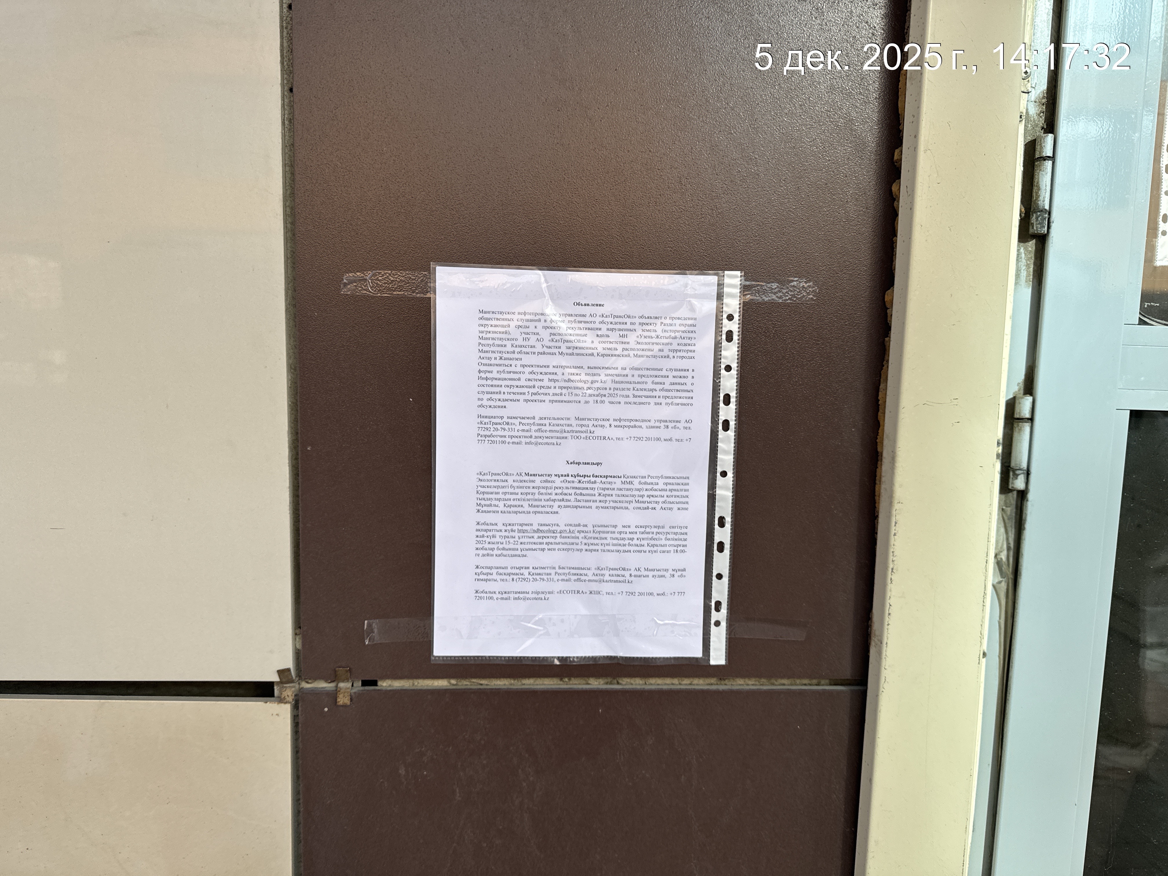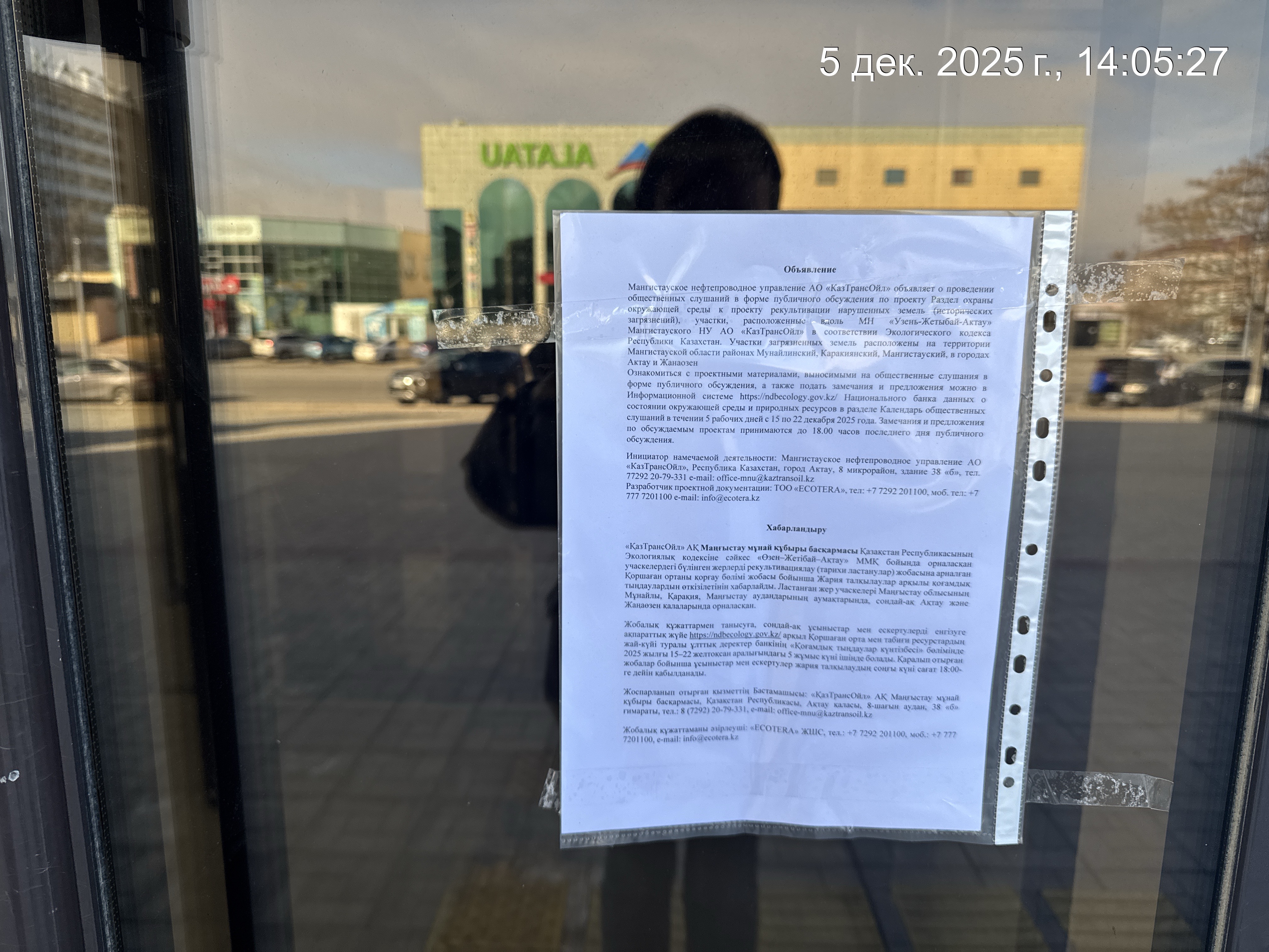 1.3. Контакты:aidayeva-e@kaztransoil.kz; kaztransoil.kz;