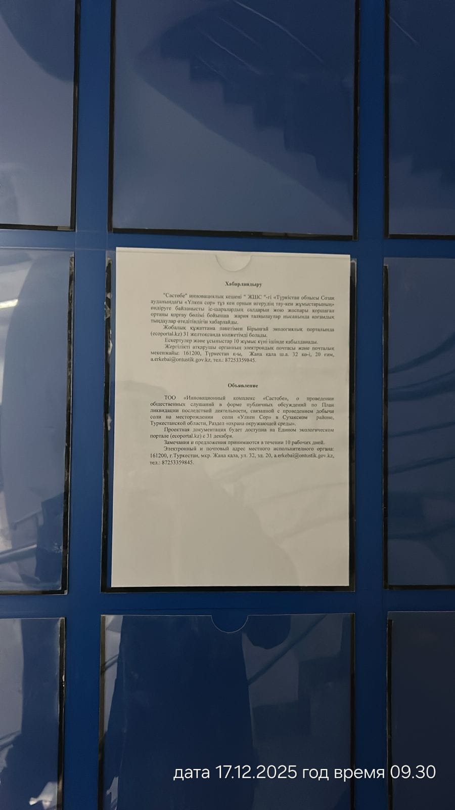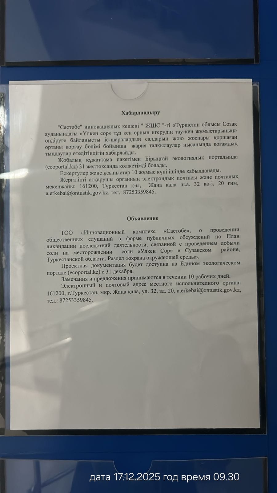 2. Период проведения общественных слушаний: 31/12/2025 - 16/01/2026