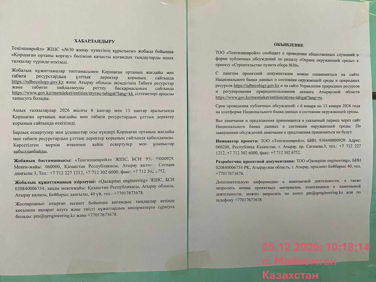 1.3. Контакты:tbisaliev@tengizchevroil.com; ;