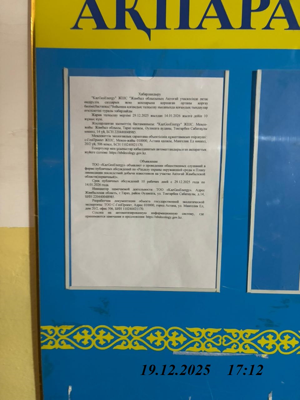 1. Инициатор: Товарищество с ограниченной ответственностью ""KazGeoEnergy""
