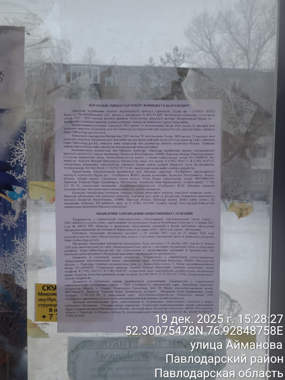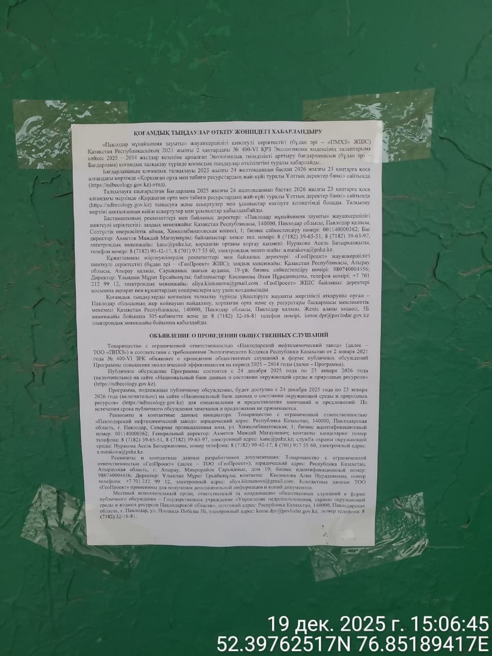 По проекту: Программа повышения экологической эффективности на период 2025 – 2034 годы ТОО "ПНХЗ"