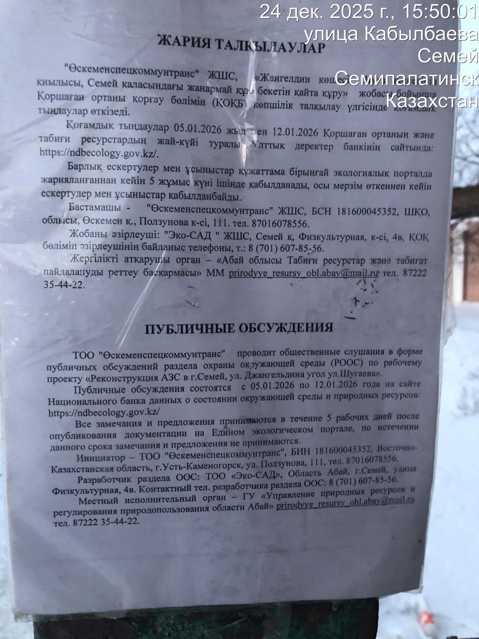 По проекту: Реконструкция АЗС в г.Семей, ул. Джангельдина угол ул.Шугаева