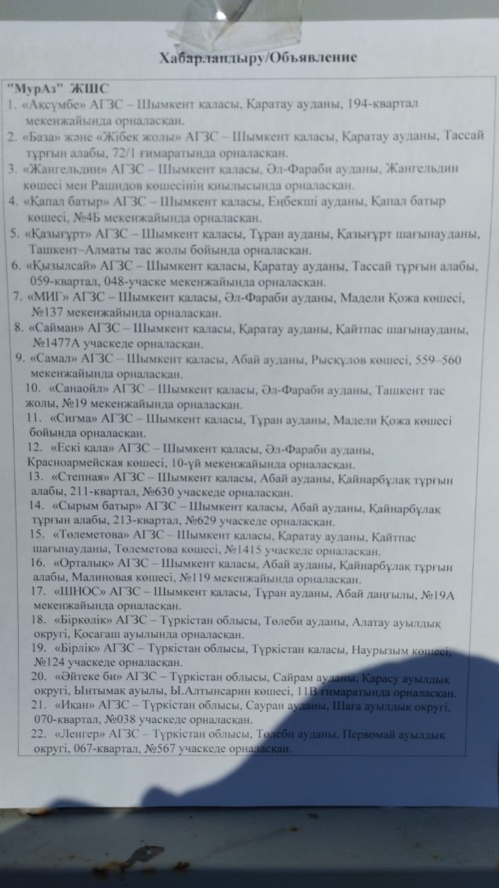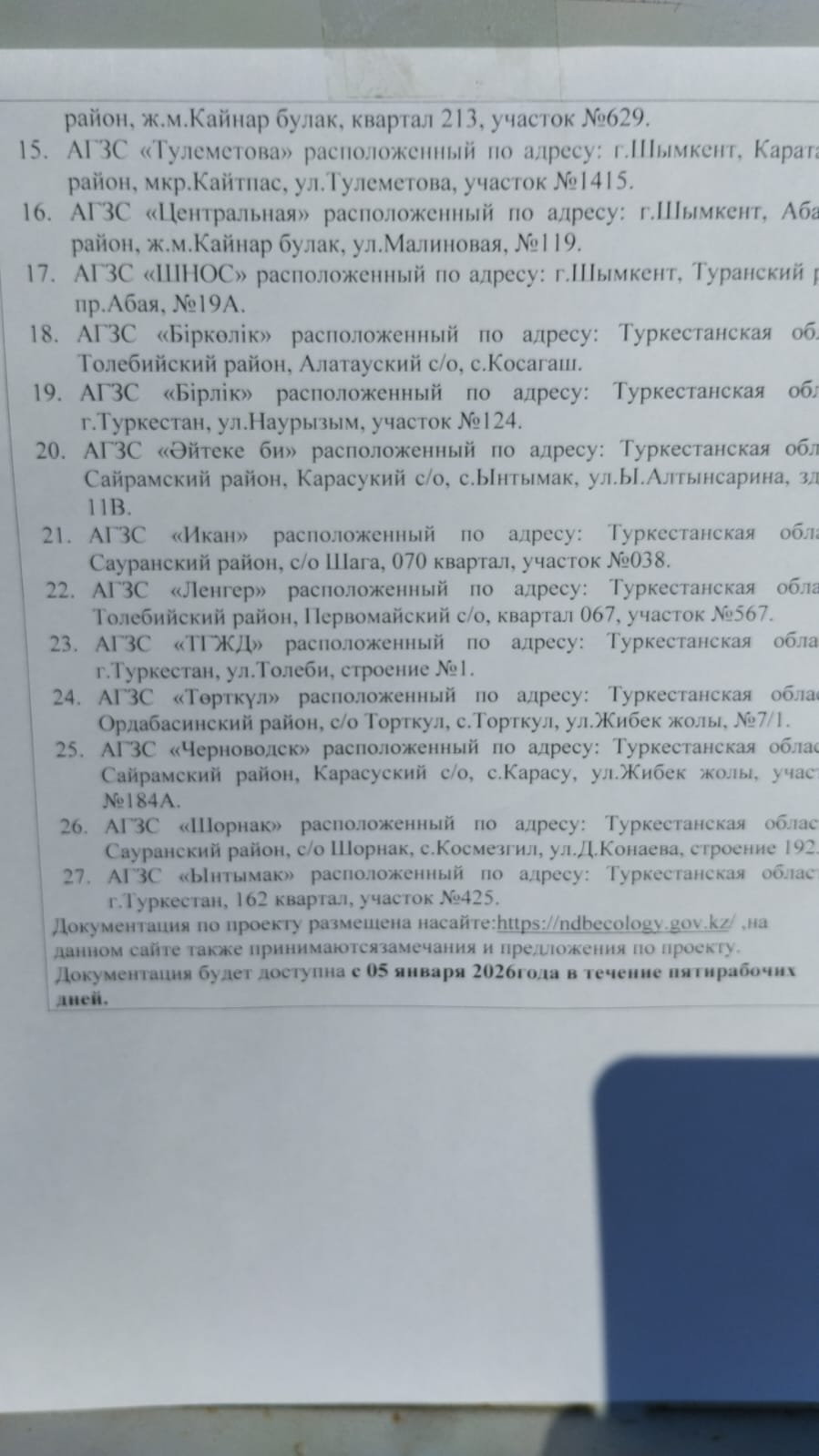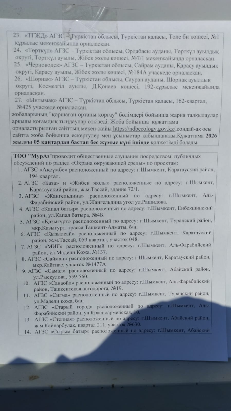 По проекту: АГЗС «База» и «Жибек жолы» расположенные по адресу: г.Шымкент, Каратауский район, ж.м.Тассай, здание 72/1