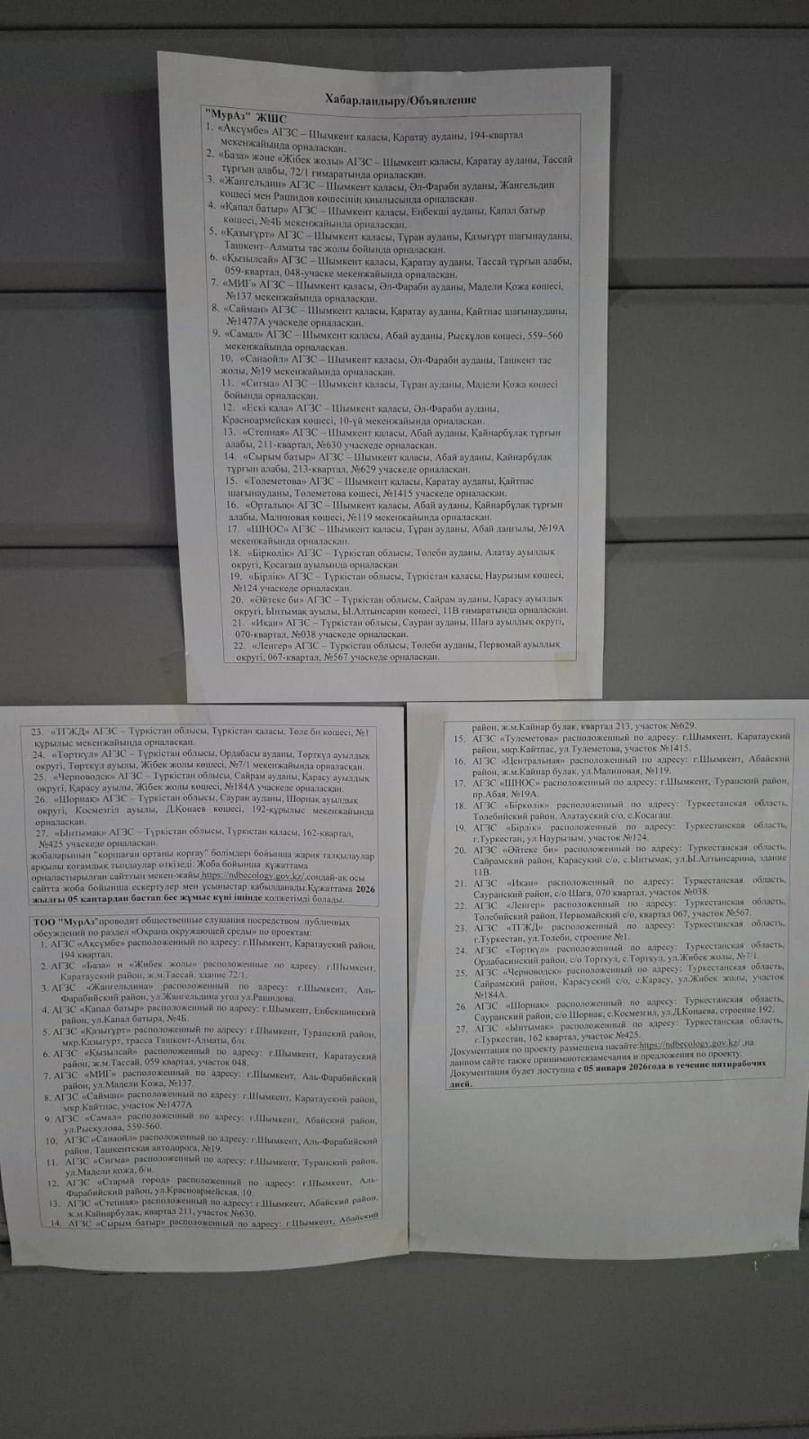По проекту: АГЗС «МИГ» расположенный по адресу: г.Шымкент, Аль-Фарабийский район, ул.Мадели Кожа, №137
