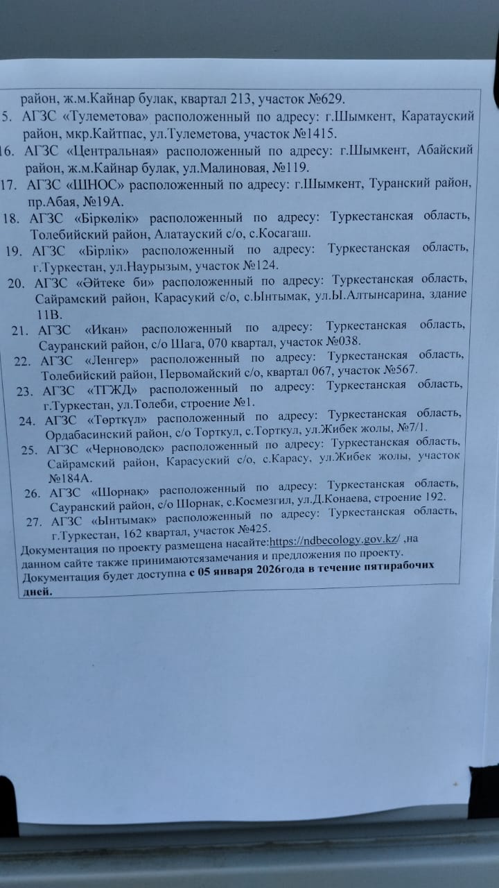 По проекту: АГЗС «Сырым батыр» расположенный по адресу: г.Шымкент, Абайский район, ж.м.Кайнар булак, квартал 213, участок №629
