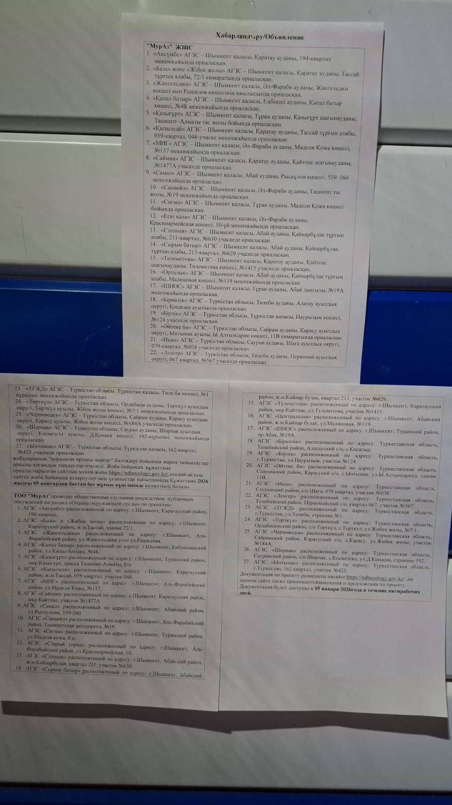 | 1 | г.Шымкент, район Тұран |