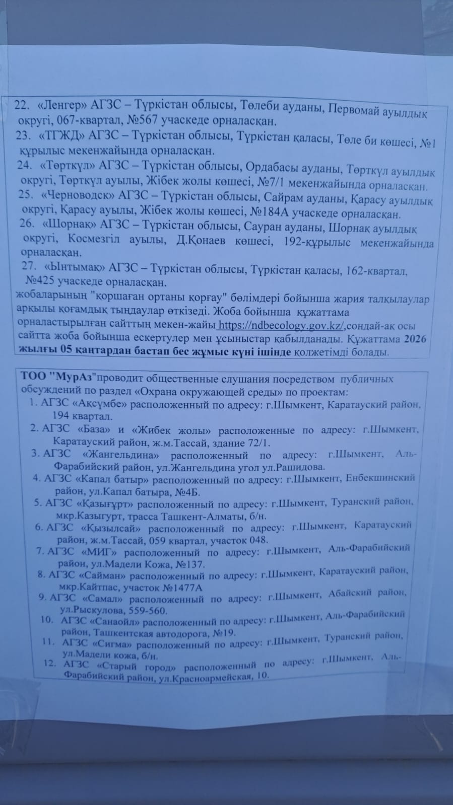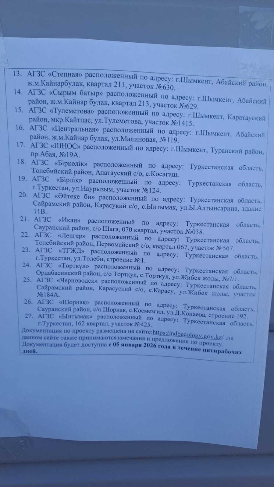 По проекту: АГЗС «Ынтымак» расположенный по адресу: Туркестанская область, г.Туркестан, 162 квартал, участок №425
