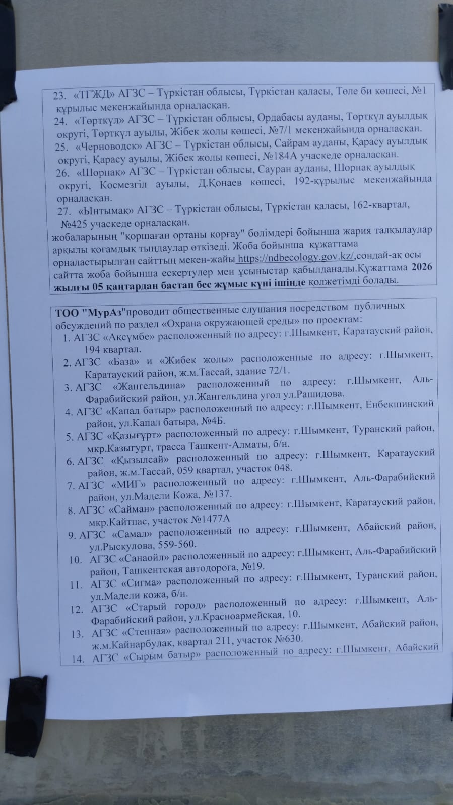 По проекту: АГЗС «Степная» расположенный по адресу: г.Шымкент, Абайский район, ж.м.Кайнарбулак, квартал 211, участок №630