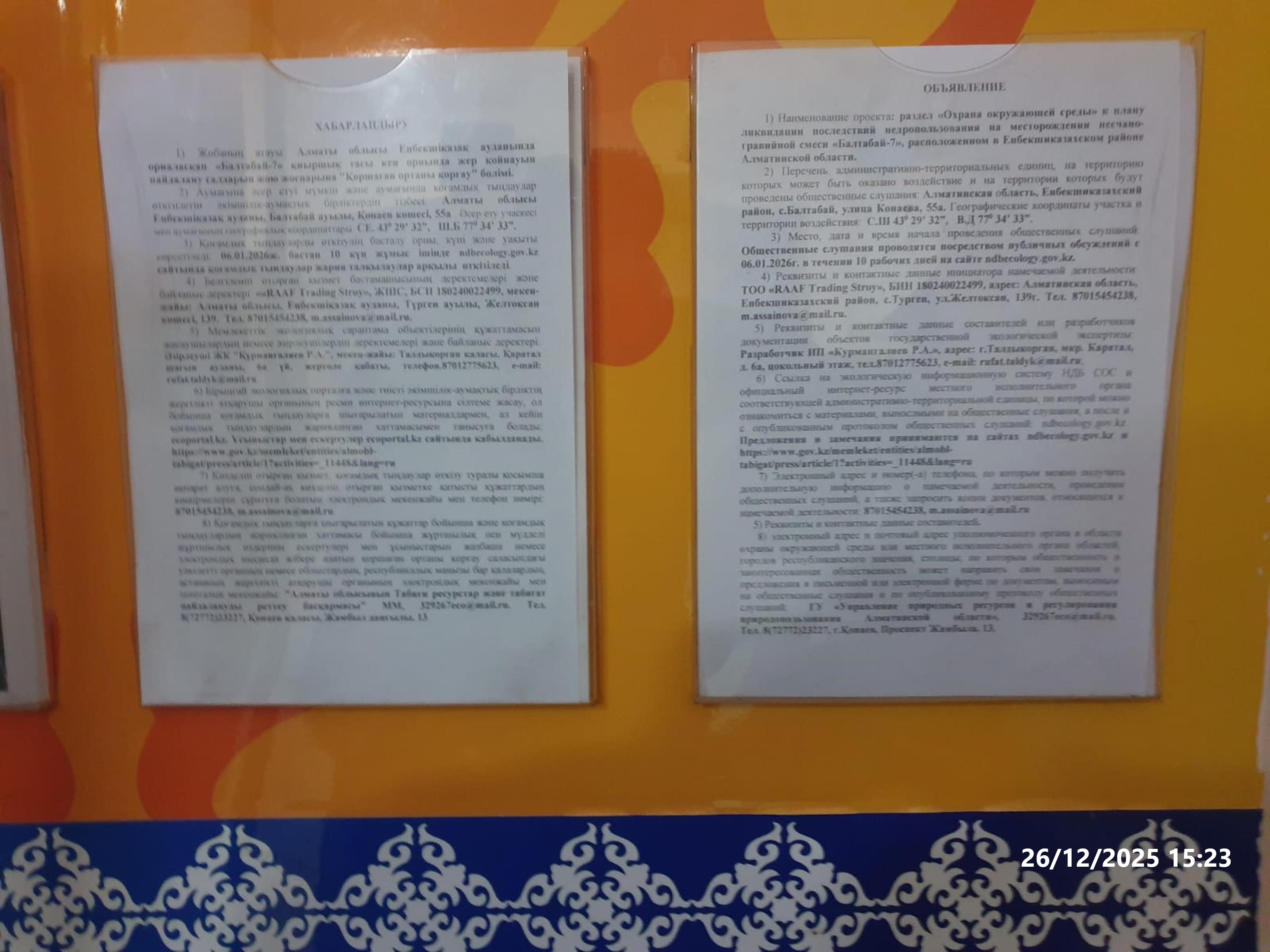 2. Период проведения общественных слушаний: 06/01/2026 - 20/01/2026