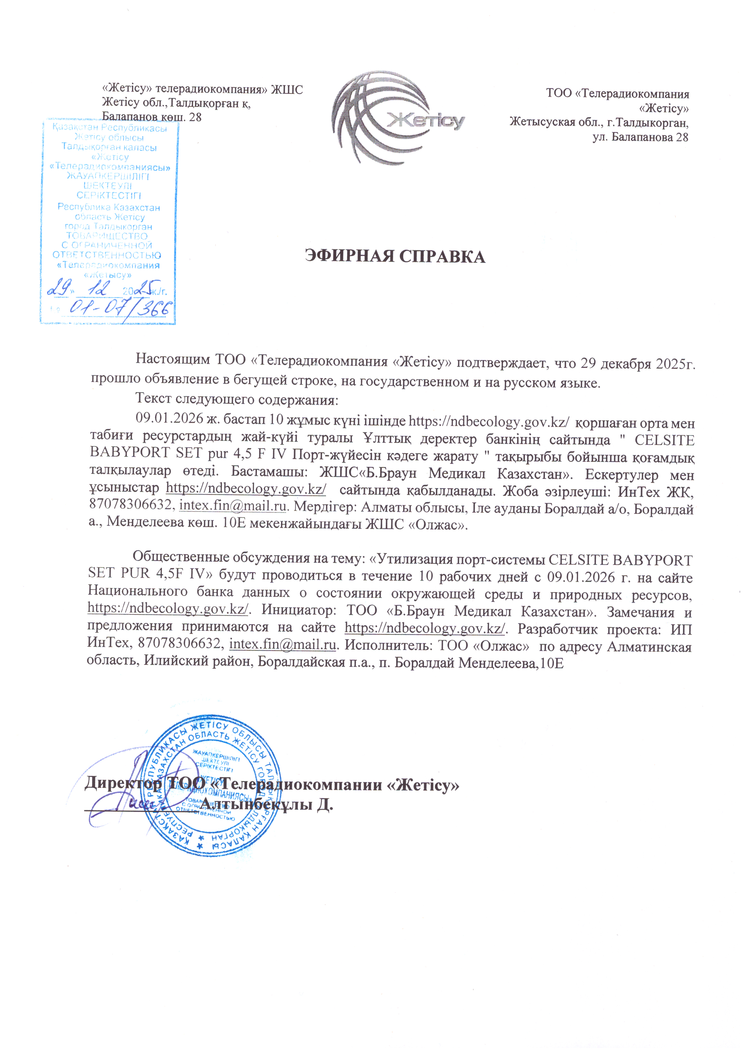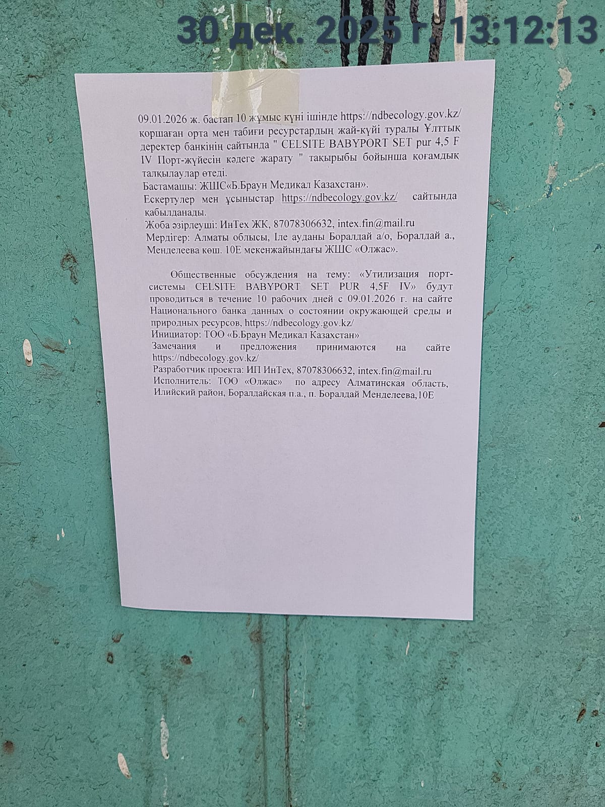 1. Инициатор: Товарищество с ограниченной ответственностью ""Б.БРАУН МЕДИКАЛ КАЗАХСТАН""