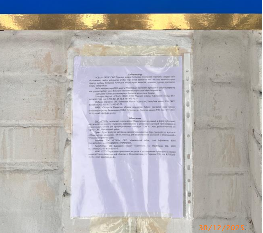 По проекту: Раздел «Охрана окружающей среды» содержится оценка воздействия на окружающую природную среду выбросов от проектируемого объекта «Установка зерносушилки с автономной системой газоснабжения и отопительных котлов для производственных площадок ТОО «Стан» расположенного по адресу: СКО, Мамлютский район»