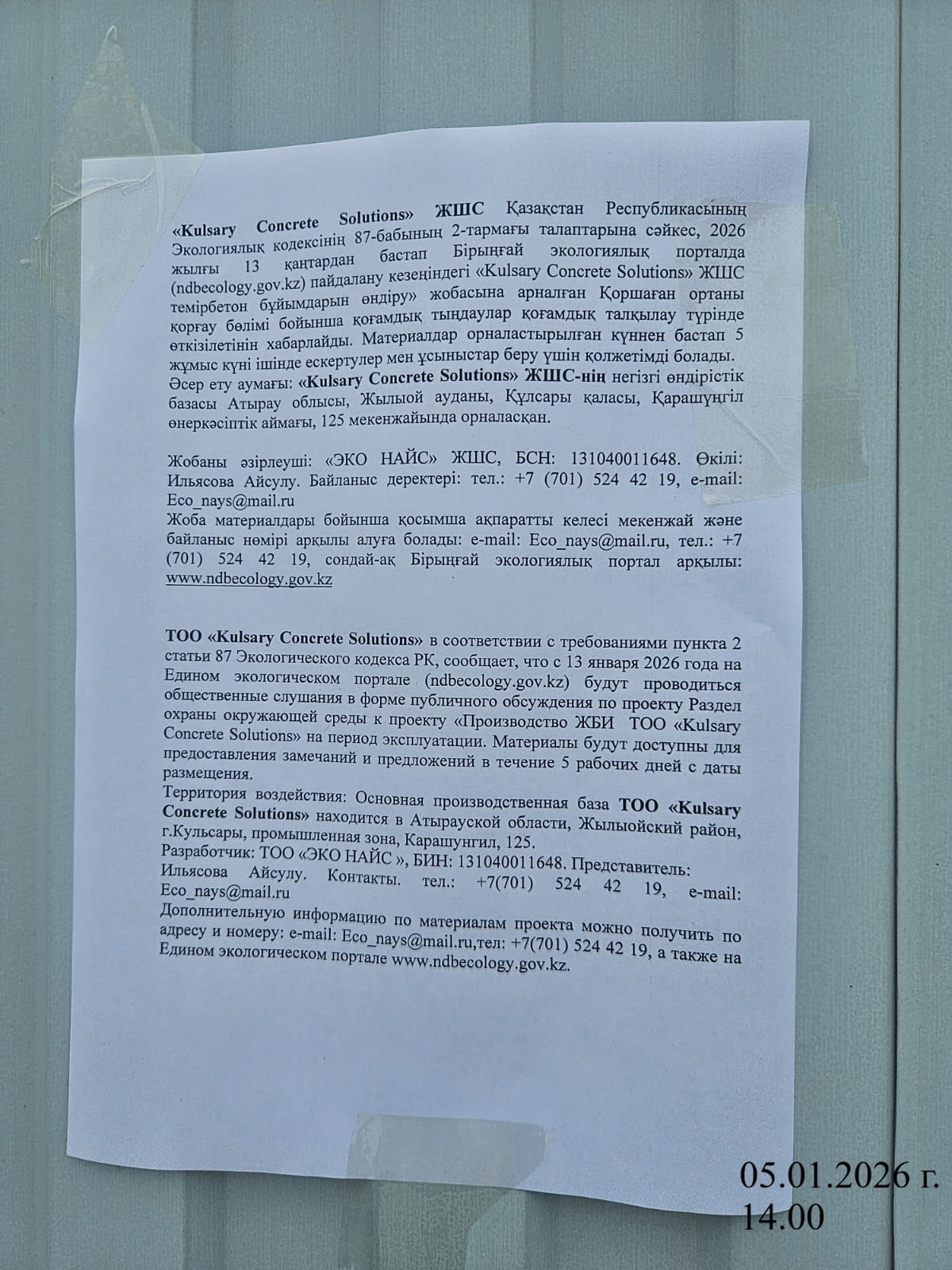 1.3. Контакты:kulsaryconcretesolutions@gmail.com; ;