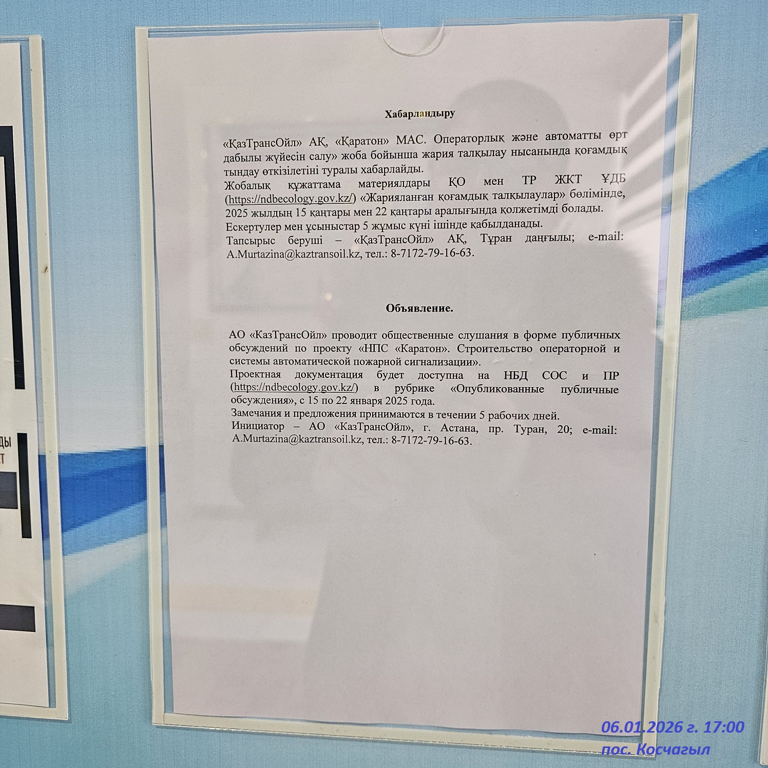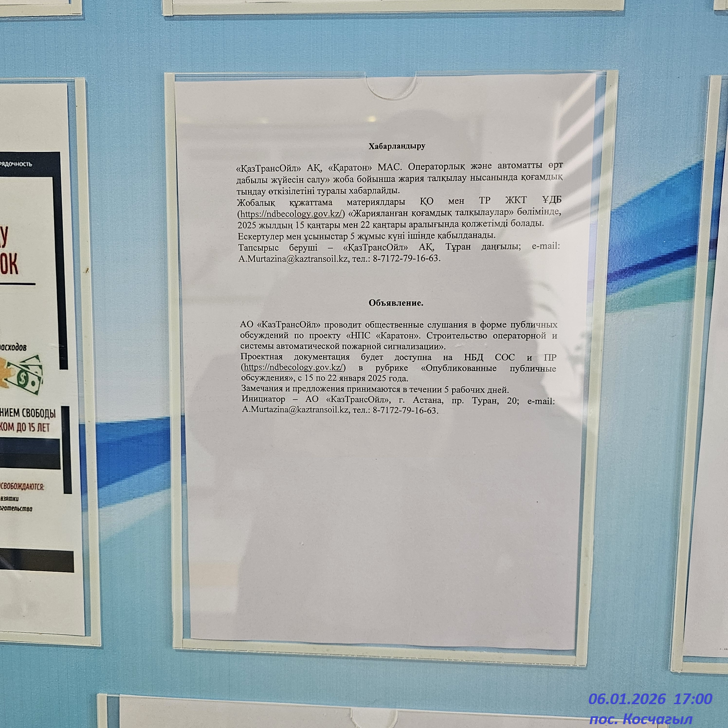 1.3. Контакты:anisimov@kaztransoil.kz; ;
