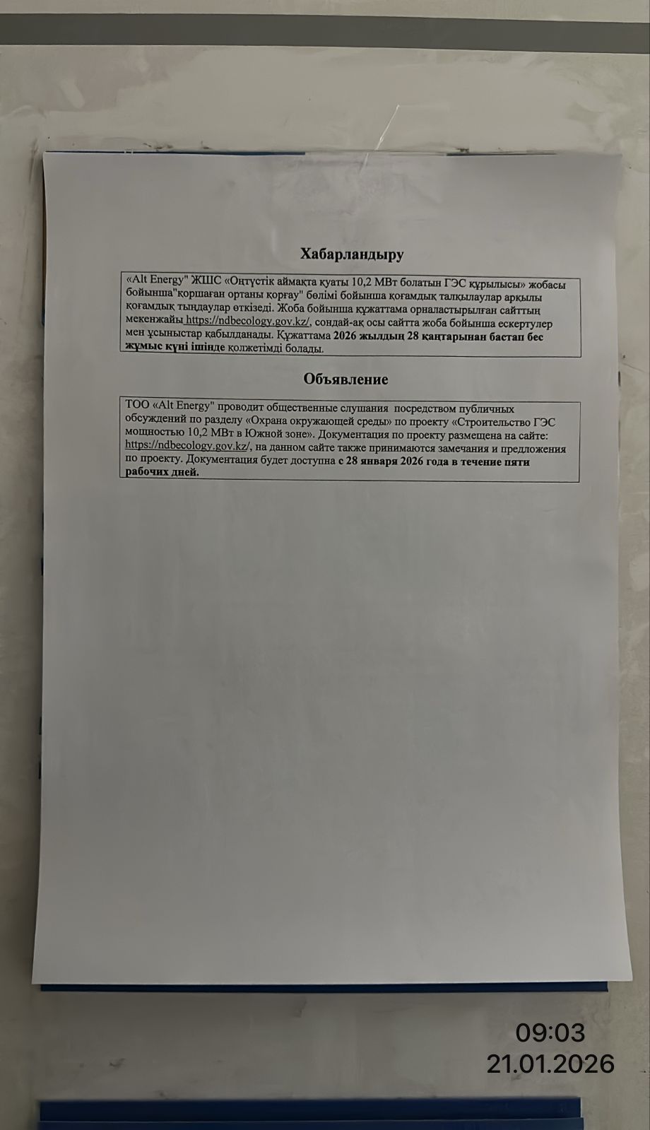 1. Инициатор: Товарищество с ограниченной ответственностью ""Alt Energy""