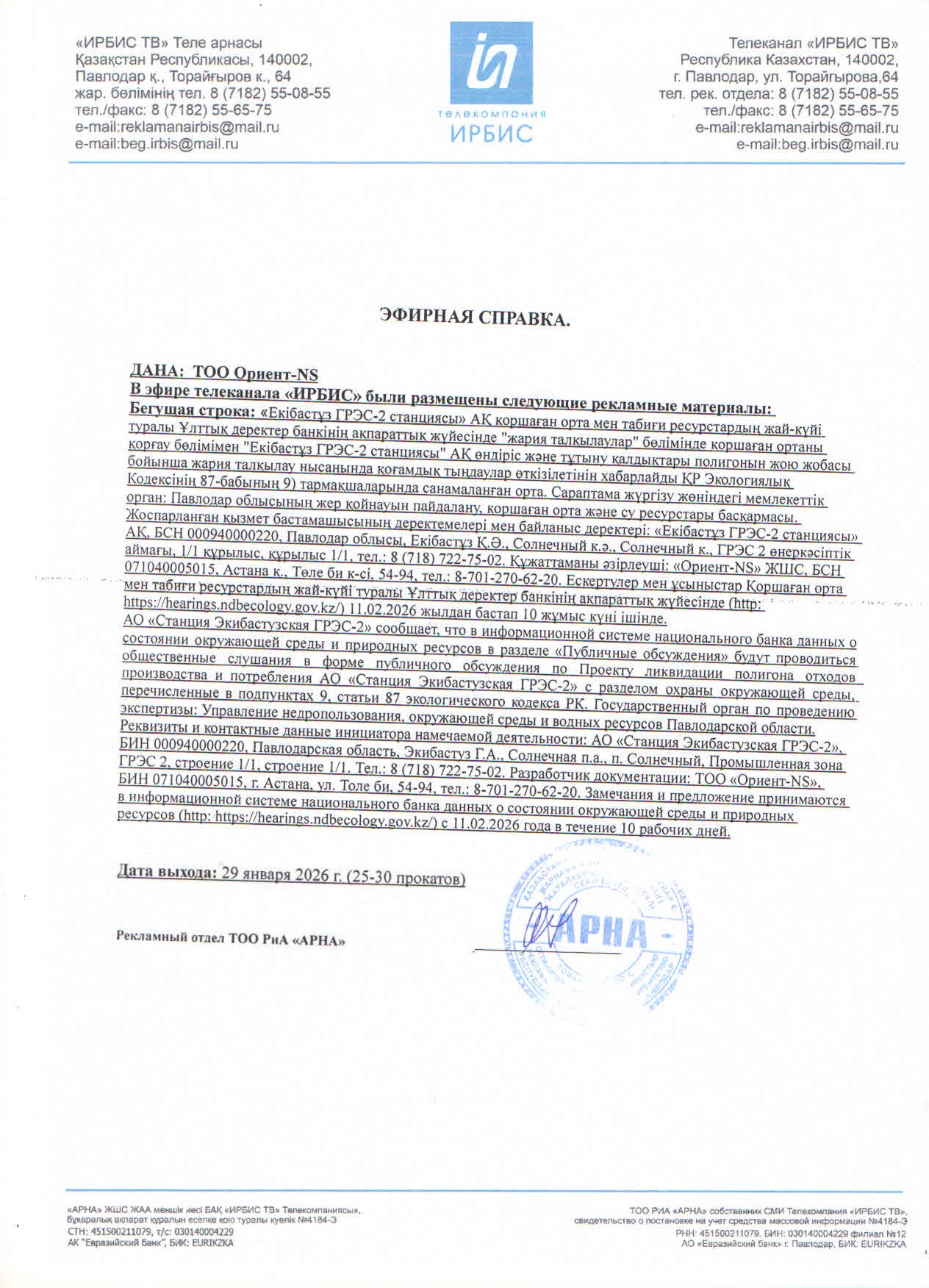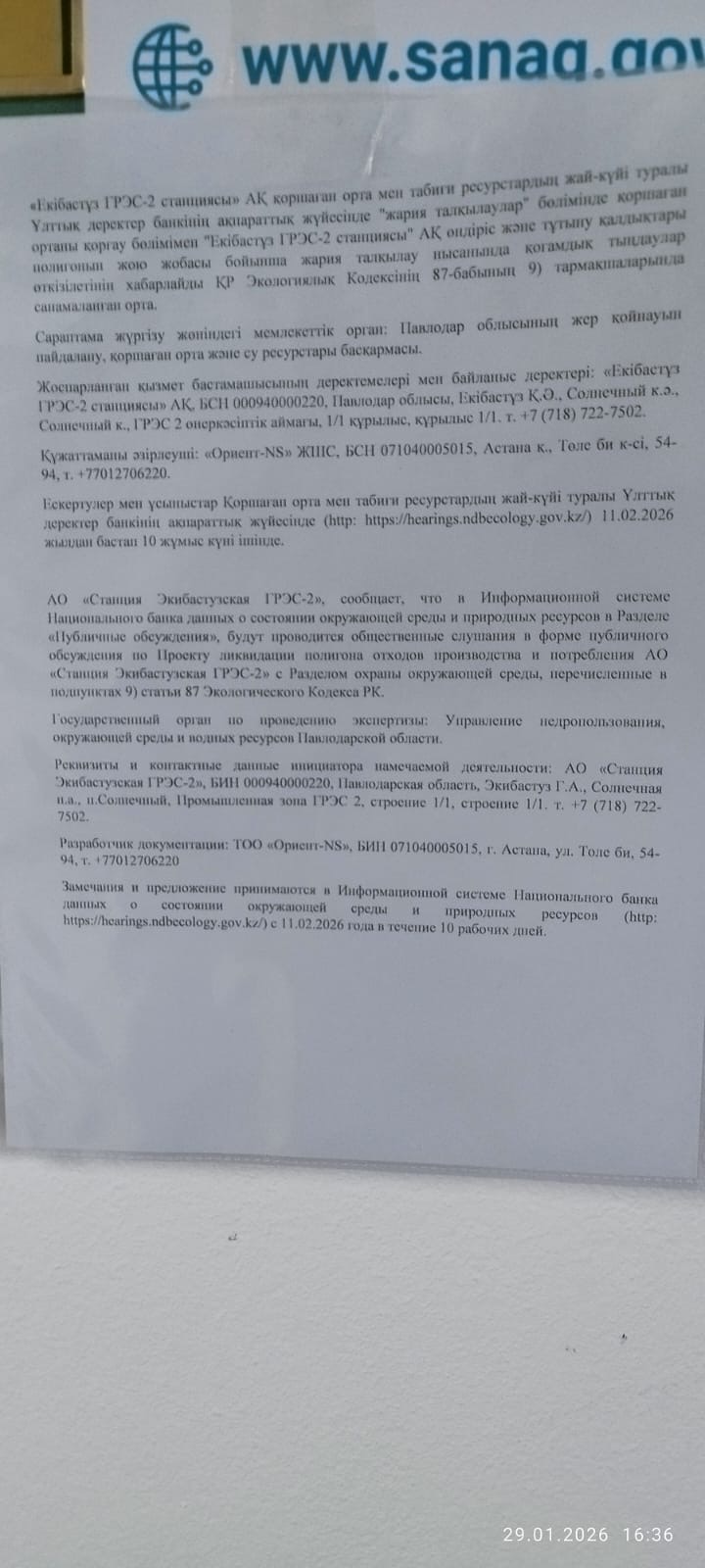 1.3. Контакты:ybezrukavaya@gres2.kz; ;